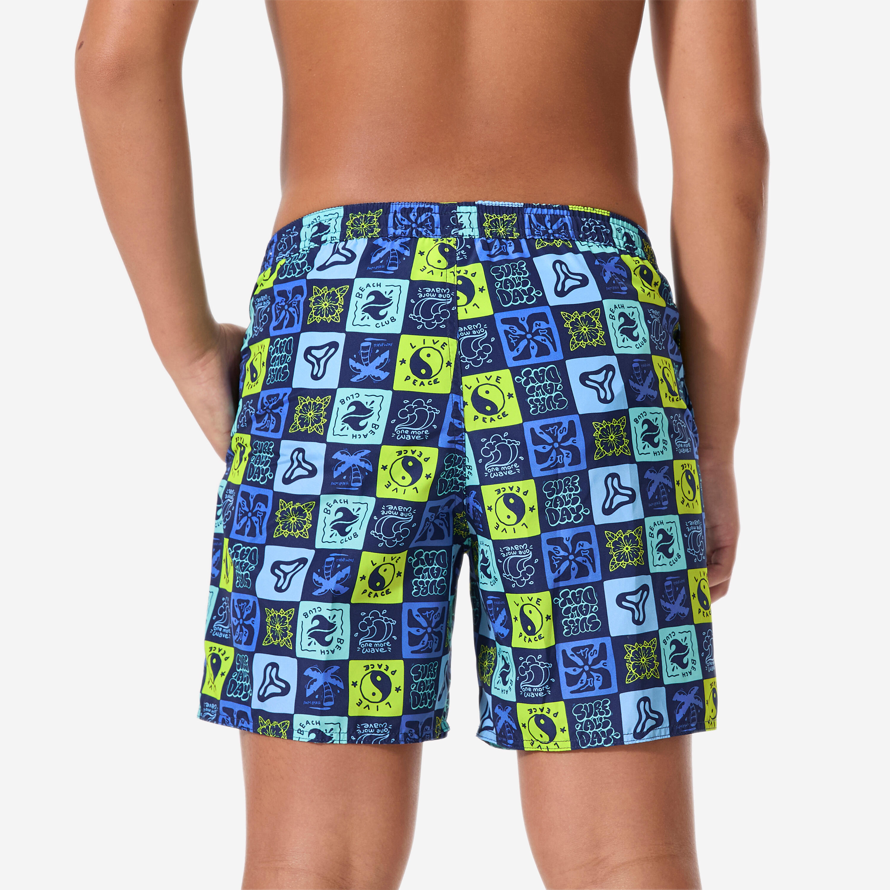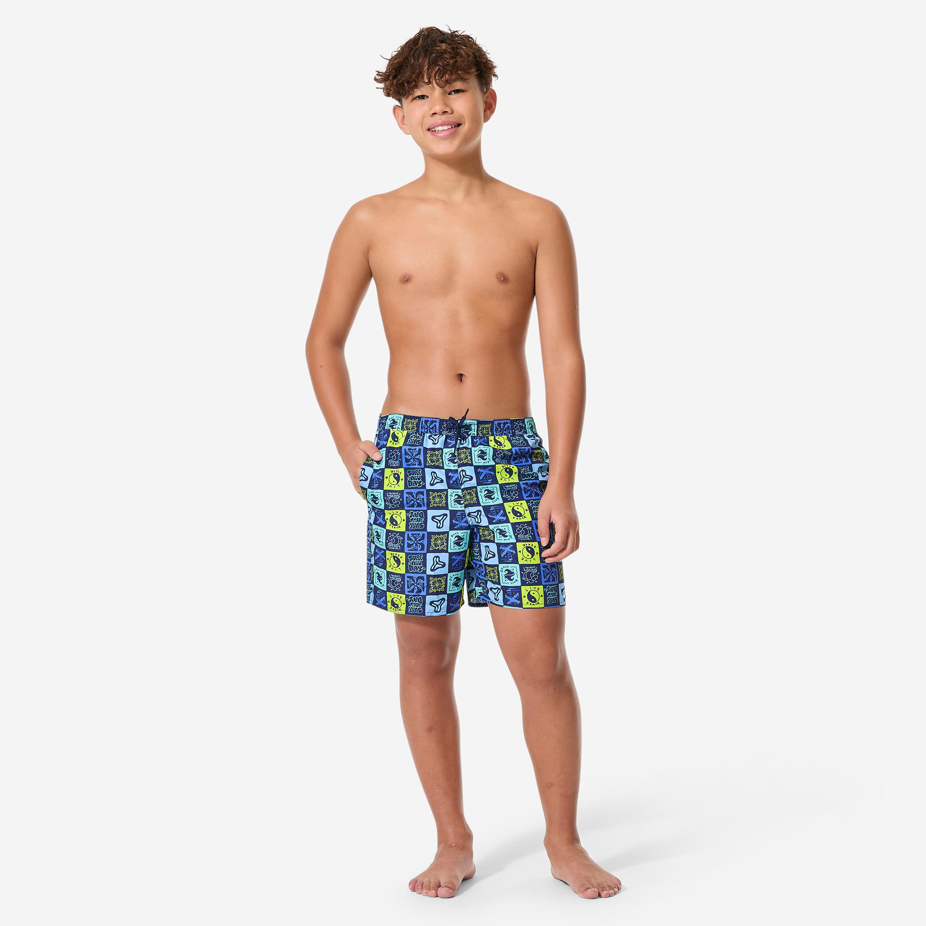 These swim shorts are perfect for surfers aged 8 to 15 for catching their first waves. The drawstring and elasticated waistband keep them securely in place.