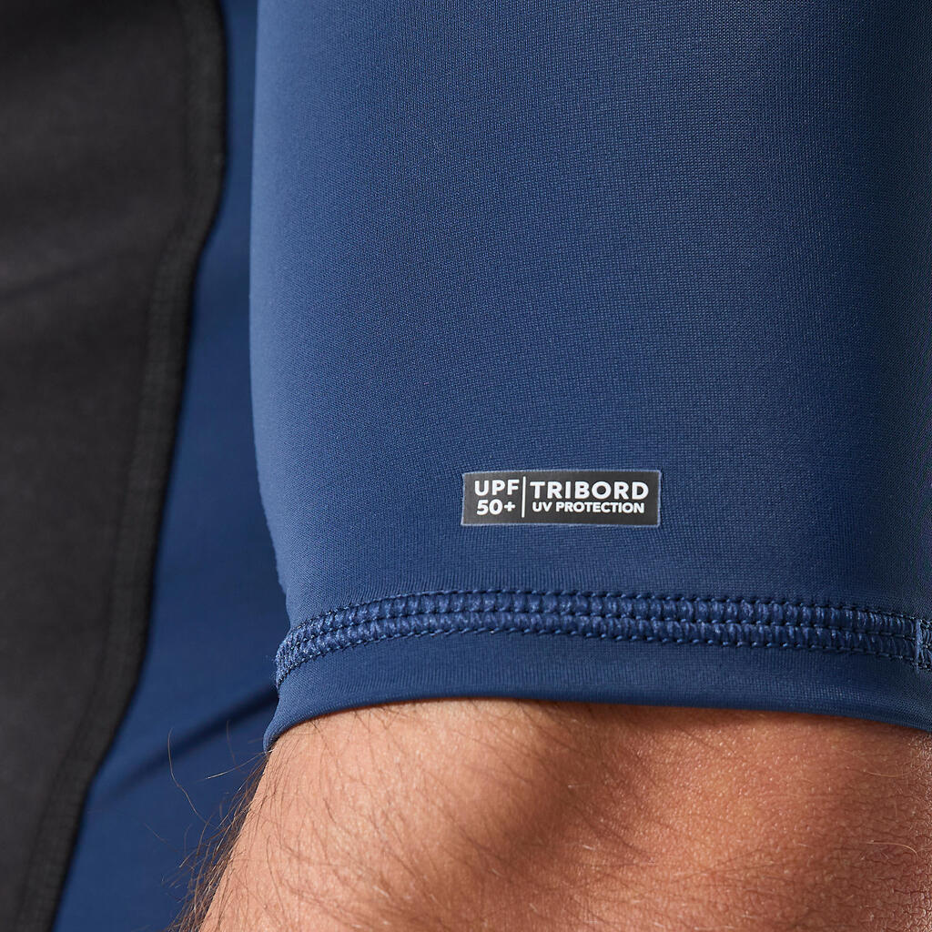 The fabric of this UV-resistant product blocks at least 98% of UVB radiation and 95% of UVA (UPF 50+). This guarantees effective protection from the sun. It can be used both in and out of the water, for water or nautical sports. The density of the textile fibres filters out UV rays, for long-lasting protection, even after washing. The fleece inserts contain elastane, which may deteriorate in chlorinated water