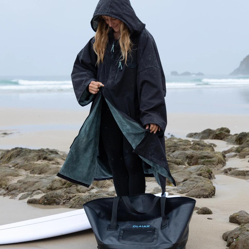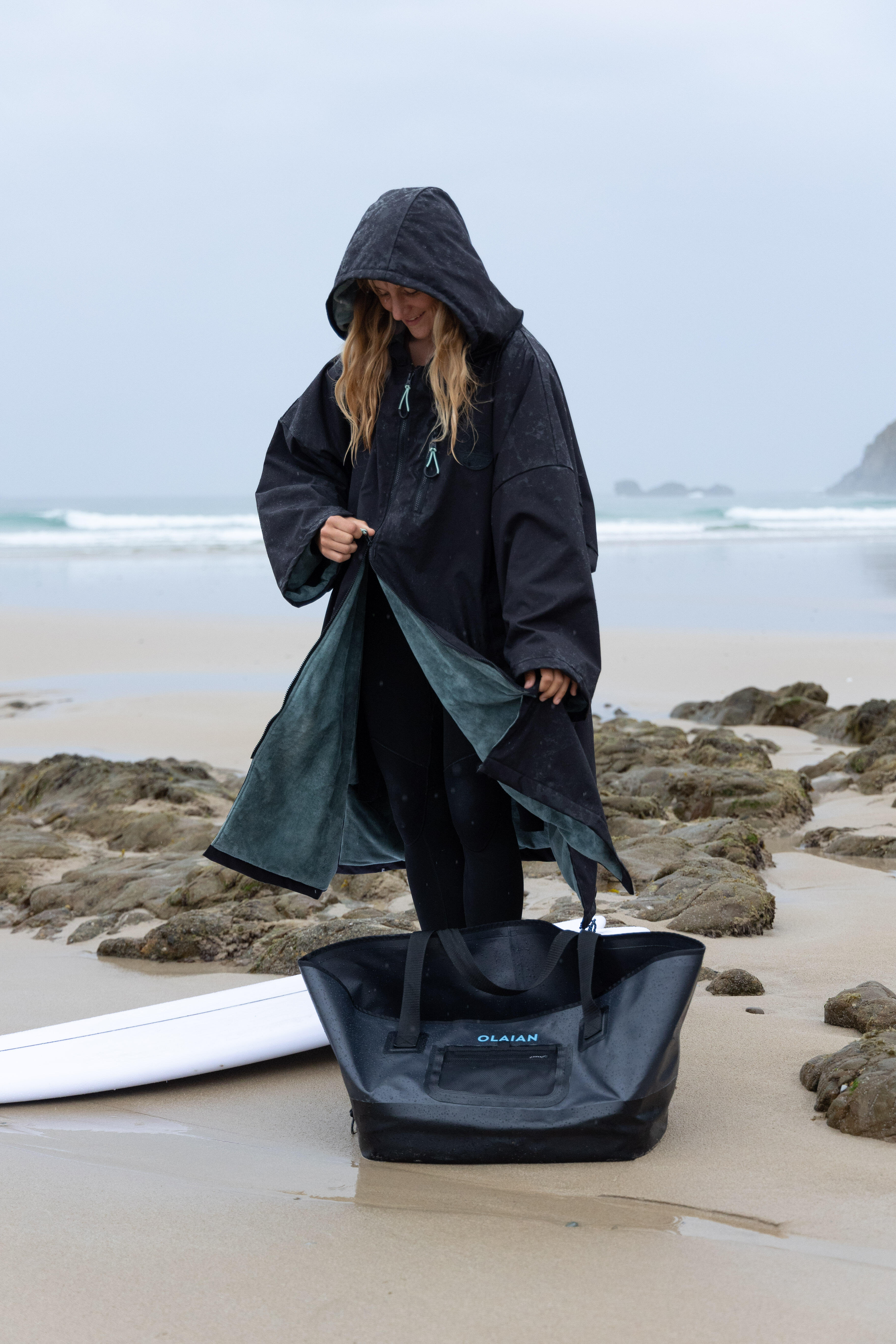 Ideal for changing after your surfing or swimming sessions, to quickly restore warmth and comfort, thanks to its waterproof outer shell and cotton inner lining.