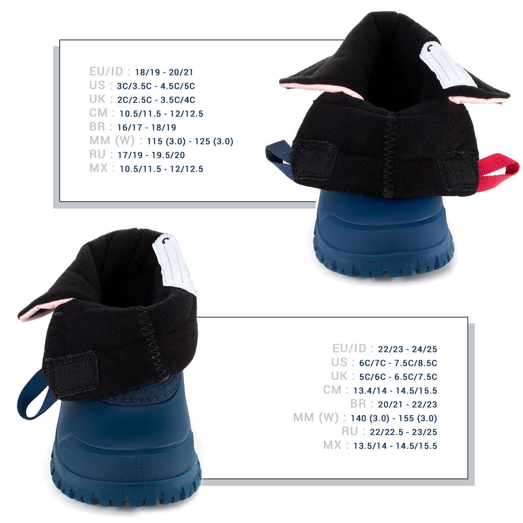 These warm boots have been tested in an external laboratory according to a thermal resistance protocol compared to other Decathlon baby boots.