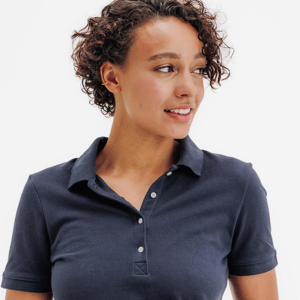 Women golf cotton and polyester short-sleeved polo shirt MW500 navy blue