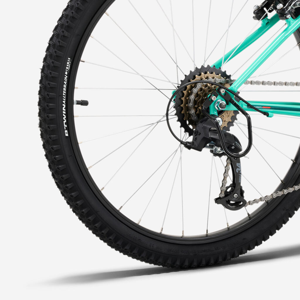 The 7-speed derailleur allows you to switch gears on the 14/34 freewheel.