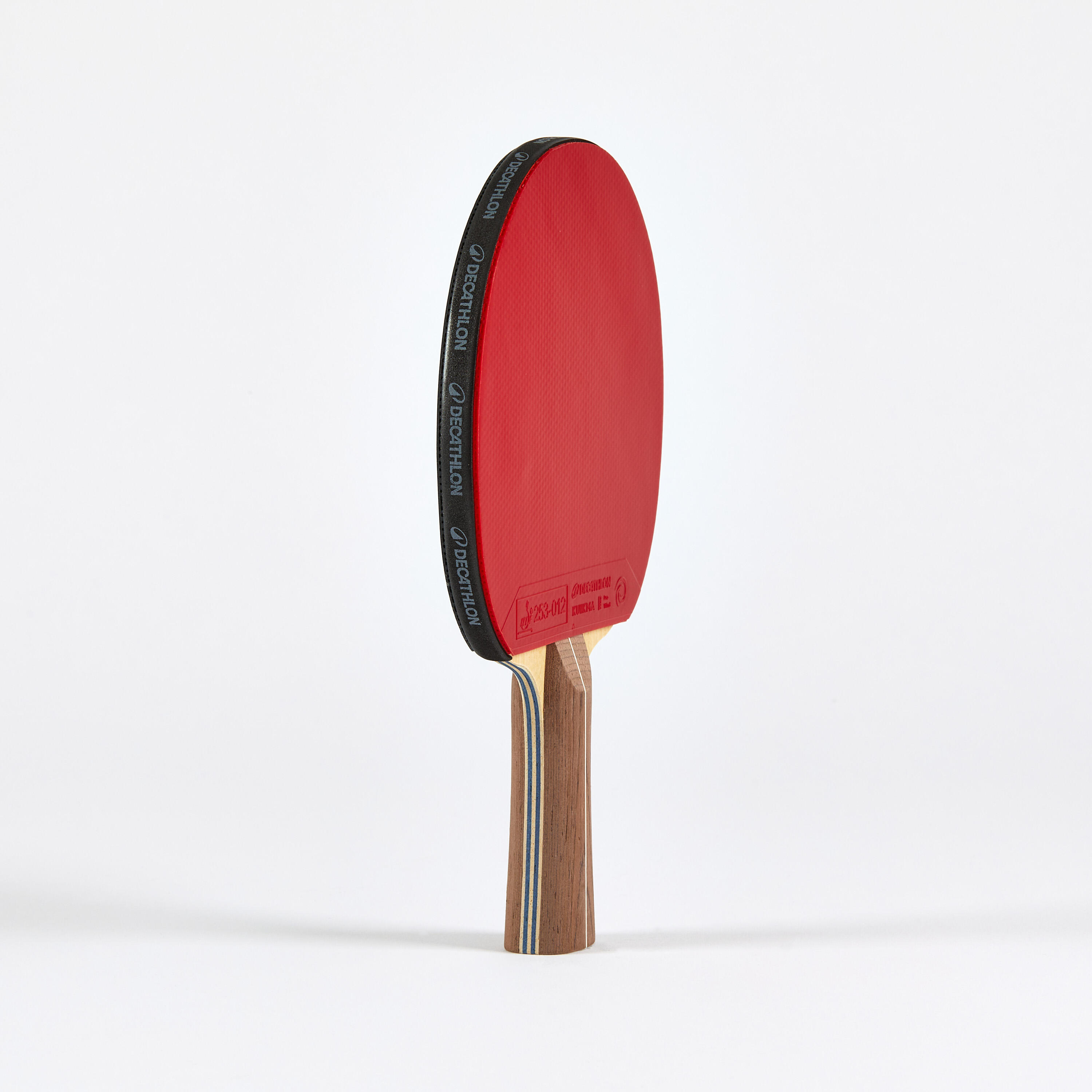 The sponge has a max thickness of 2.3 mm and a hardness of 50° Shore L for the TTRB Pro Rock (black), while for the TTRB Pro Wind (red), it has a thickness of 2.1 mm and a hardness of 58.5 Shore H. Handle type: Flared.