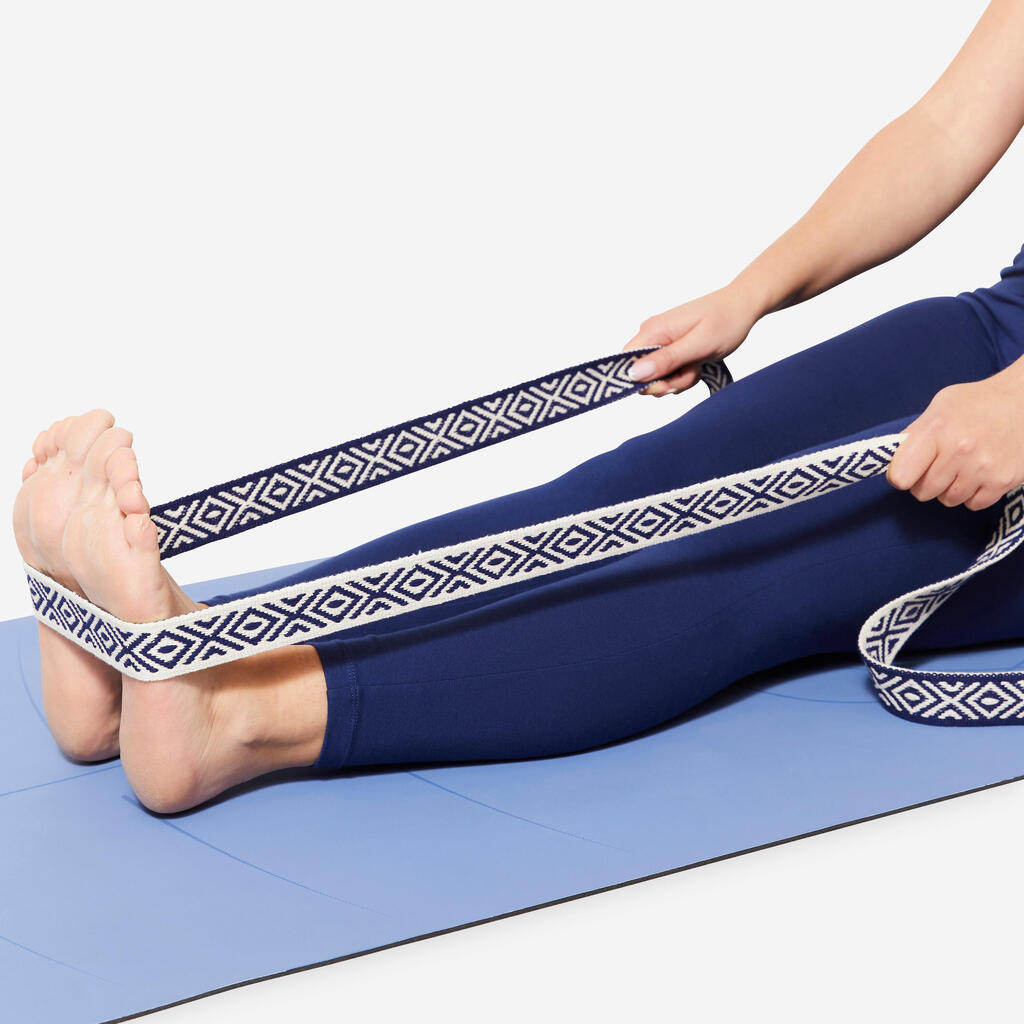 The strap is your guide to a better-aligned practice! It's there for you in each pose and respects your body. It's a natural extension of your arms, enabling you to reach your toes without forcing yourself. It helps you stretch your movements naturally and reach new positions. It's a good way to increase your flexibility gradually. It guarantees correct alignment for safe yoga.