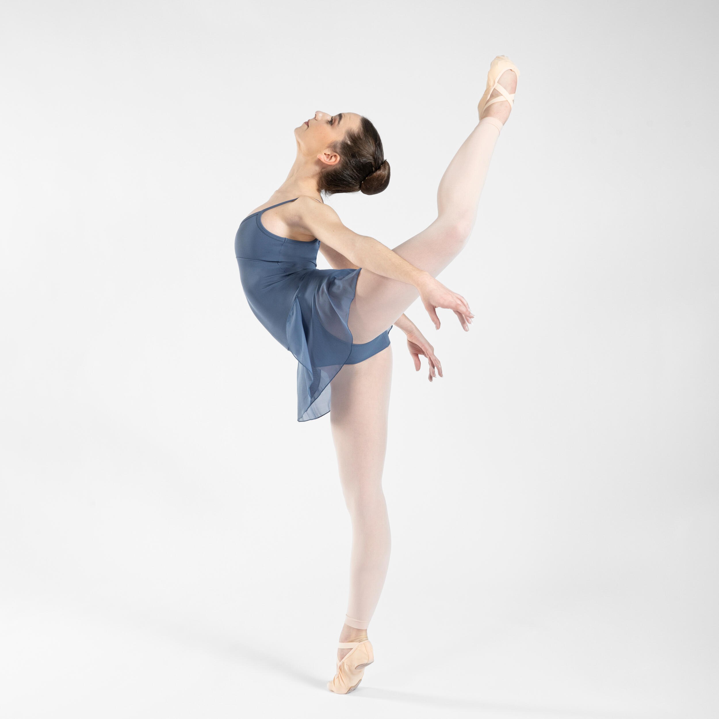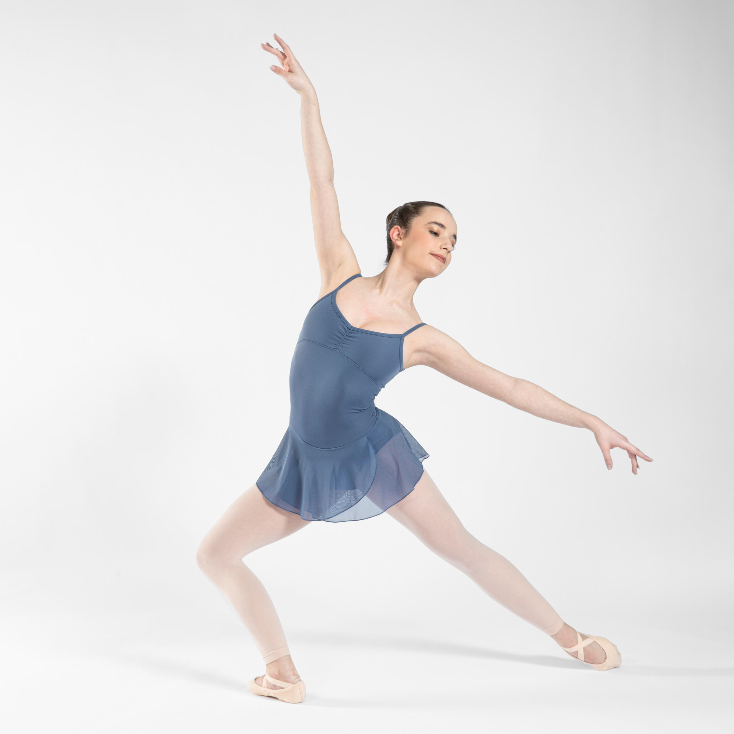 The ideal skirted leotard for all skill levels, from beginner to advanced dancers. Thin straps, gathered at the front and lined, its built-in muslin skirt will make it easy to see your movements