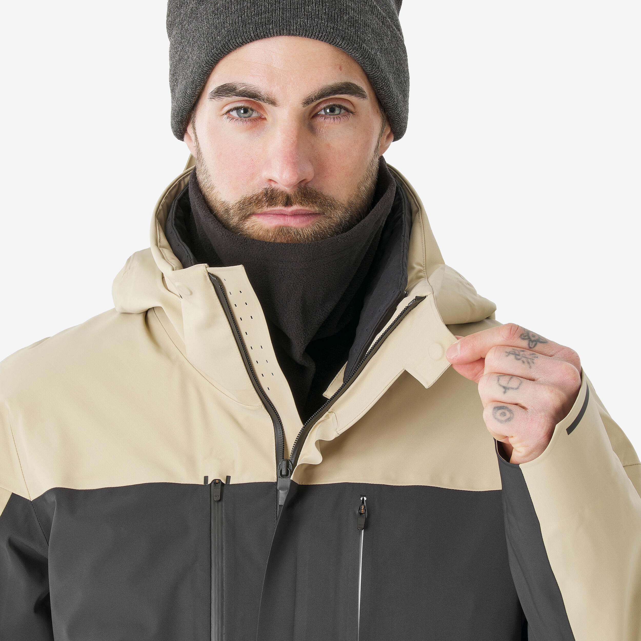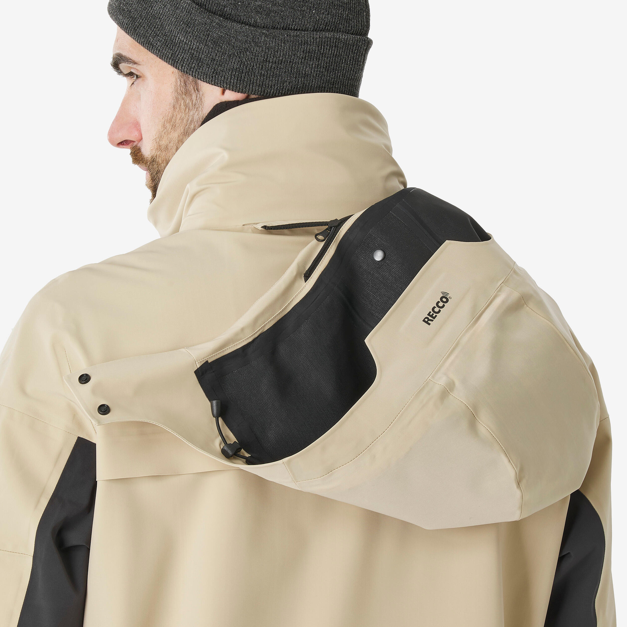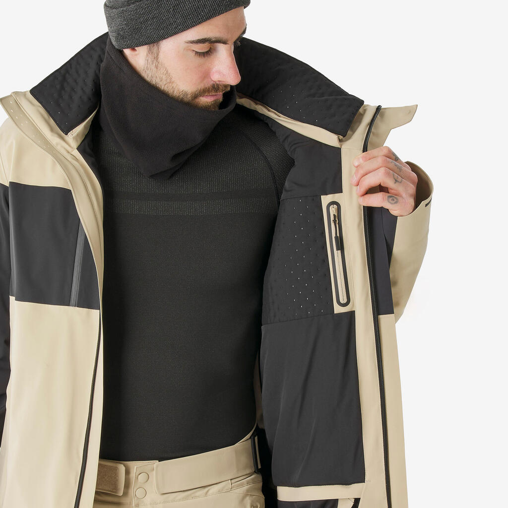 The waterproof component and the assembly prevent water getting in. The seams are waterproof, and the zips are also waterproof and under a protective flap. This jacket has been tested in a special shower that reproduces the conditions of the ski resorts, and in the field for several days in different weather conditions.