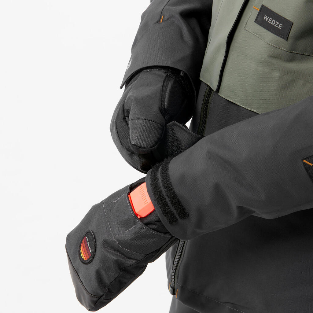 This jacket has been developed and tested with the MI 500 JR PROTECT snowboard mittens which go under the jacket so that kids can easily pass the mittens through the sleeve on their own (from 8 years upwards - at 6 years old it's still complicated). Then there are a host of features to keep the snow out