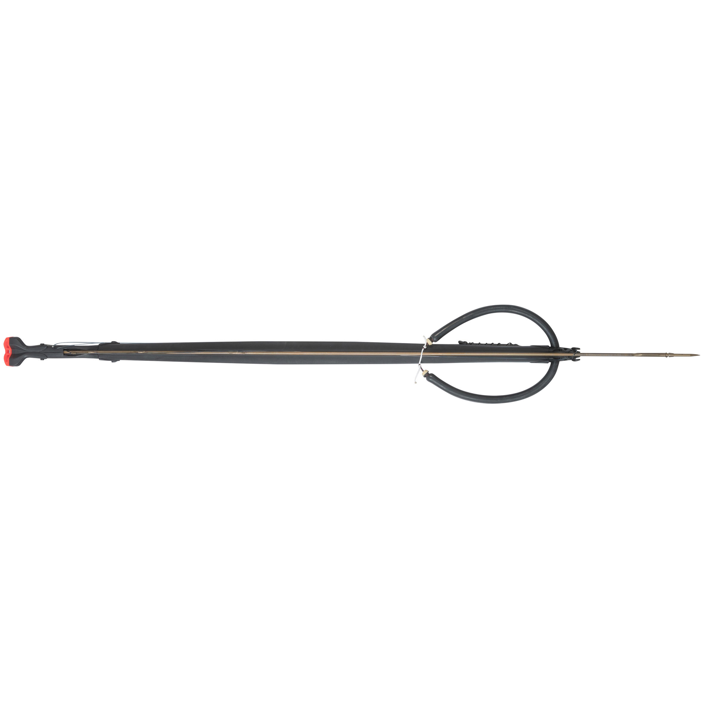 An open-muzzle speargun that meets spearfishers' needs: practical but, stable thanks to its cuttlefish bone tube, shock absorber, circular 18 mm band, stainless-steel spear.