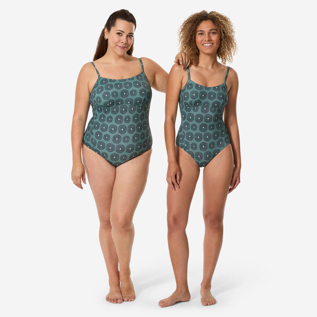 For those who want a simple, comfortable and feminine swimsuit, we have designed this 1-piece swimsuit with an open, U-shaped scoop back. The clever tightening system at the back lets you keep the thin straps in place and provides better support for your bust. The round and sensible neckline with slight support is intended for small to medium-sized busts. Medium leg height. Easy to put on.