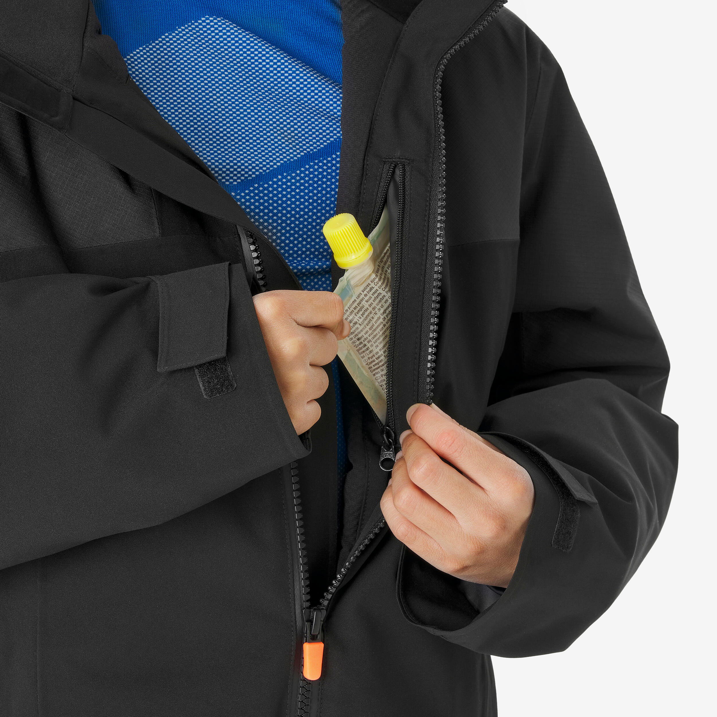The snow skirt is a protective system located at waist level. It closes with press studs at the bottom of the ski jacket. It prevents snow and draughts from entering when practicing winter sports, especially in the event of a fall.