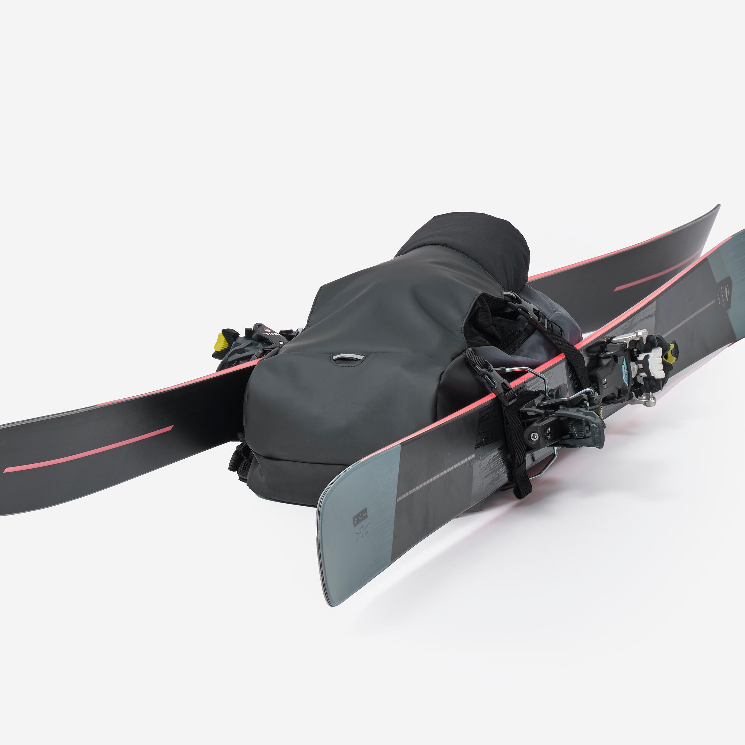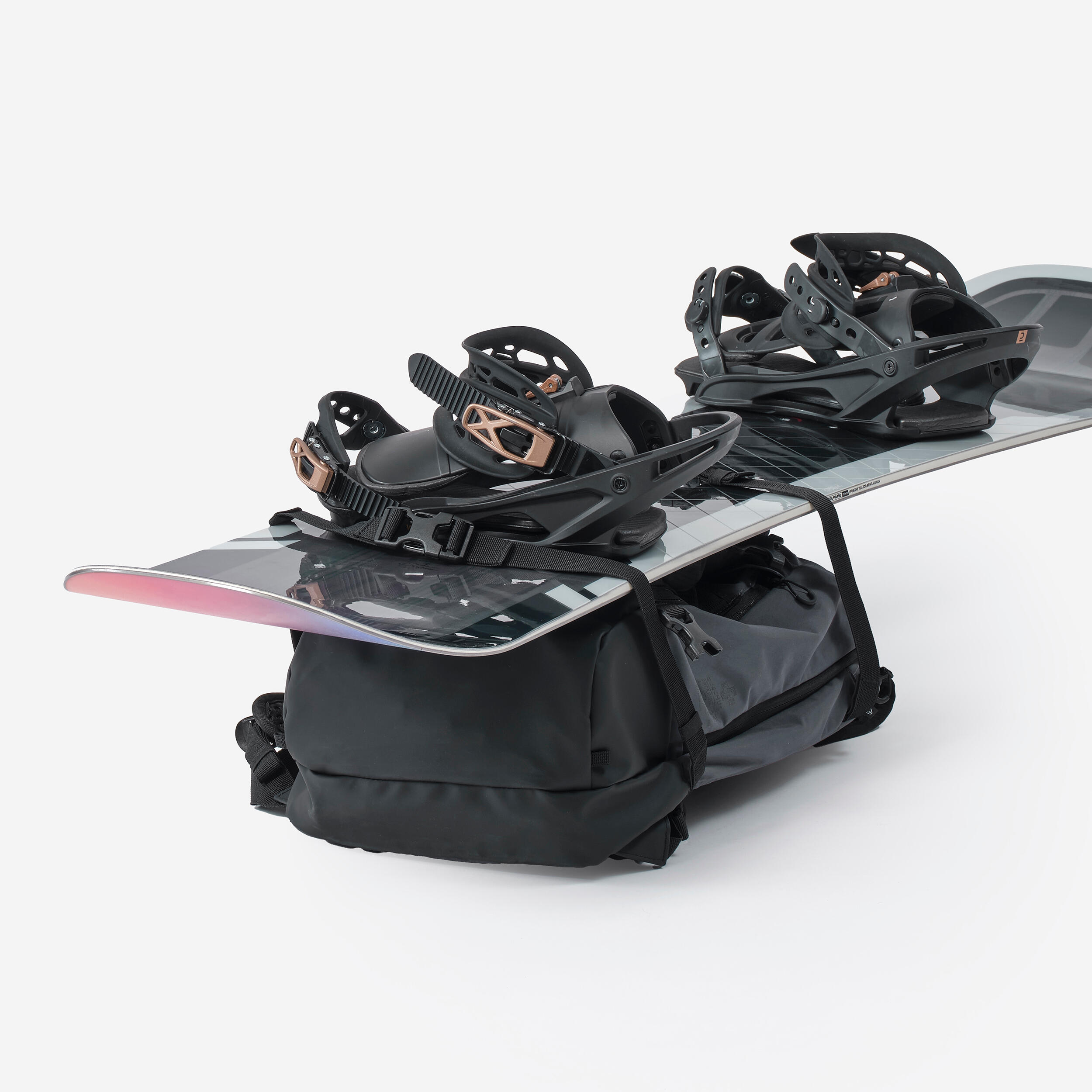 The carrying straps let you carry a pair of skis (up to 140 mm to the tail), or a snowboard.