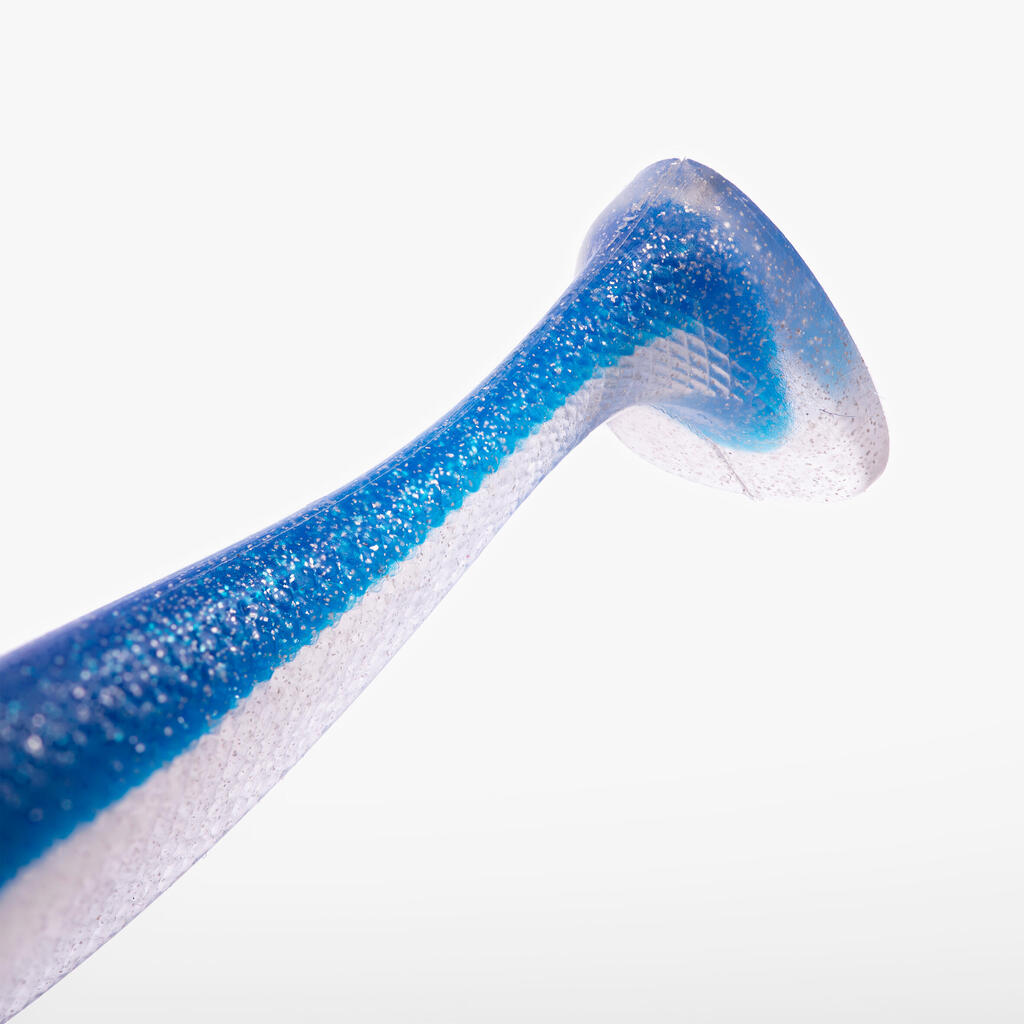 This soft lure shad is fitted with a glued sinker head that makes it ready-to-use. Its tail gives is a tight swimming motion that gives off big vibrations.