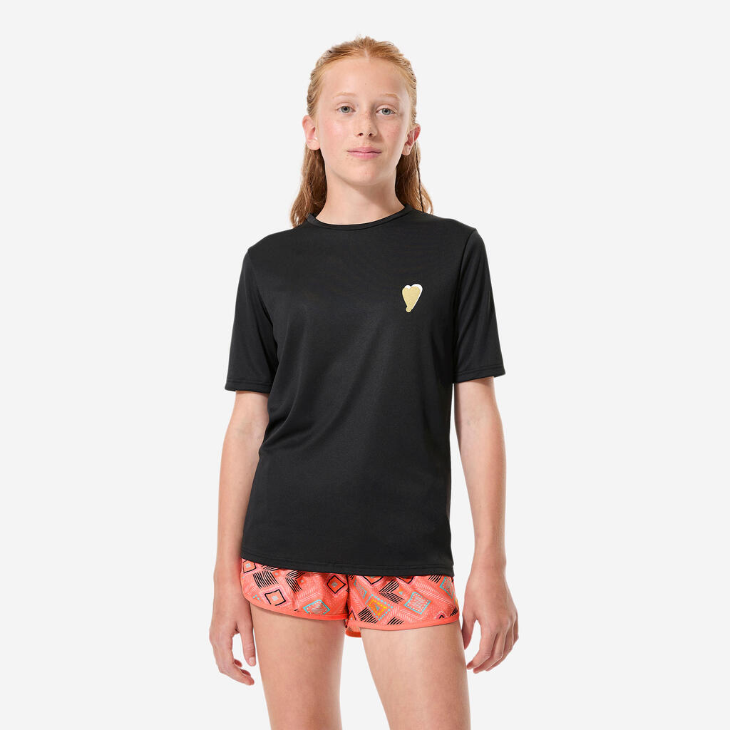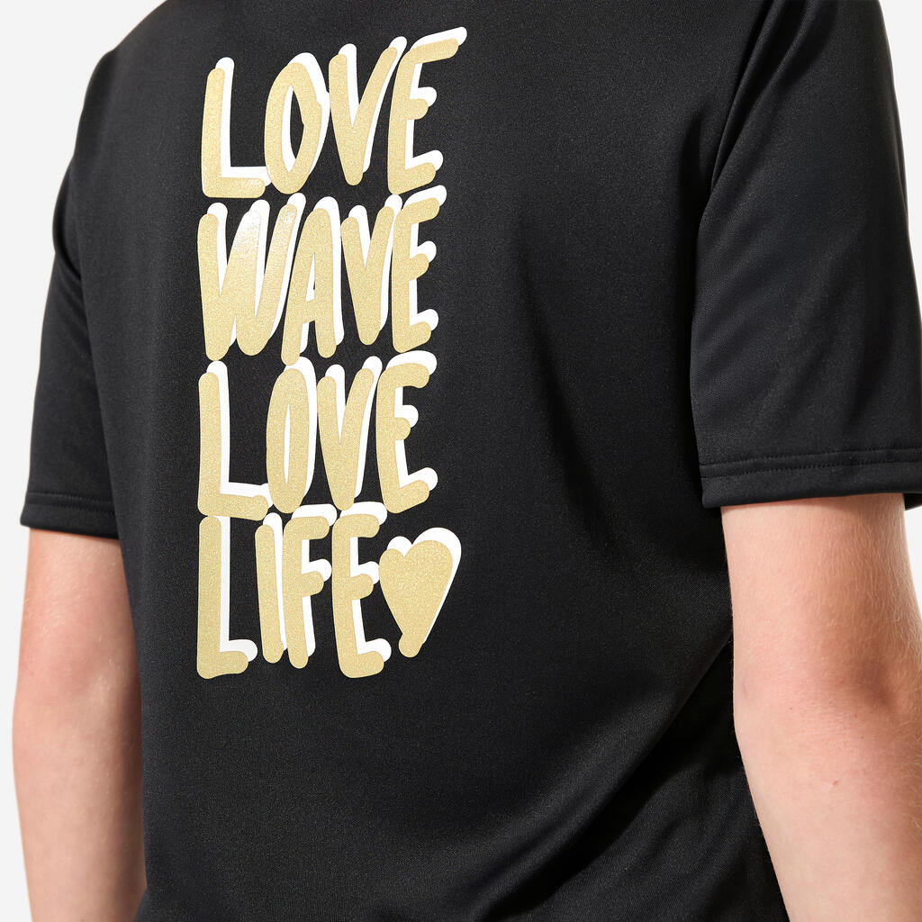 Kids’ surfing short sleeve UV-protection t-shirt - 100 Love black