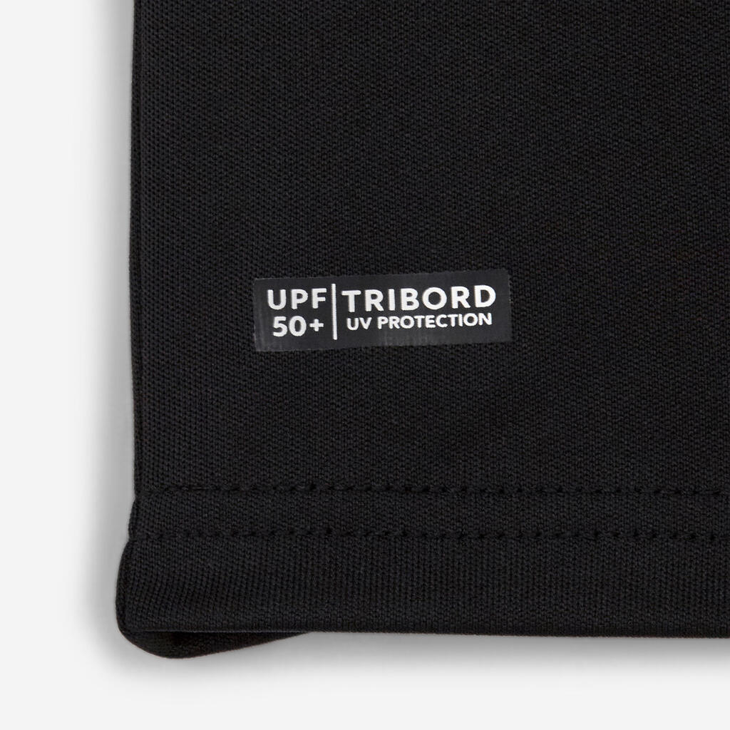 Kids’ UV-resistant short-sleeved t-shirt for protection from the sun, even in the water, and to limit irritation when in contact with the board. Loose cut makes it easy to put on.