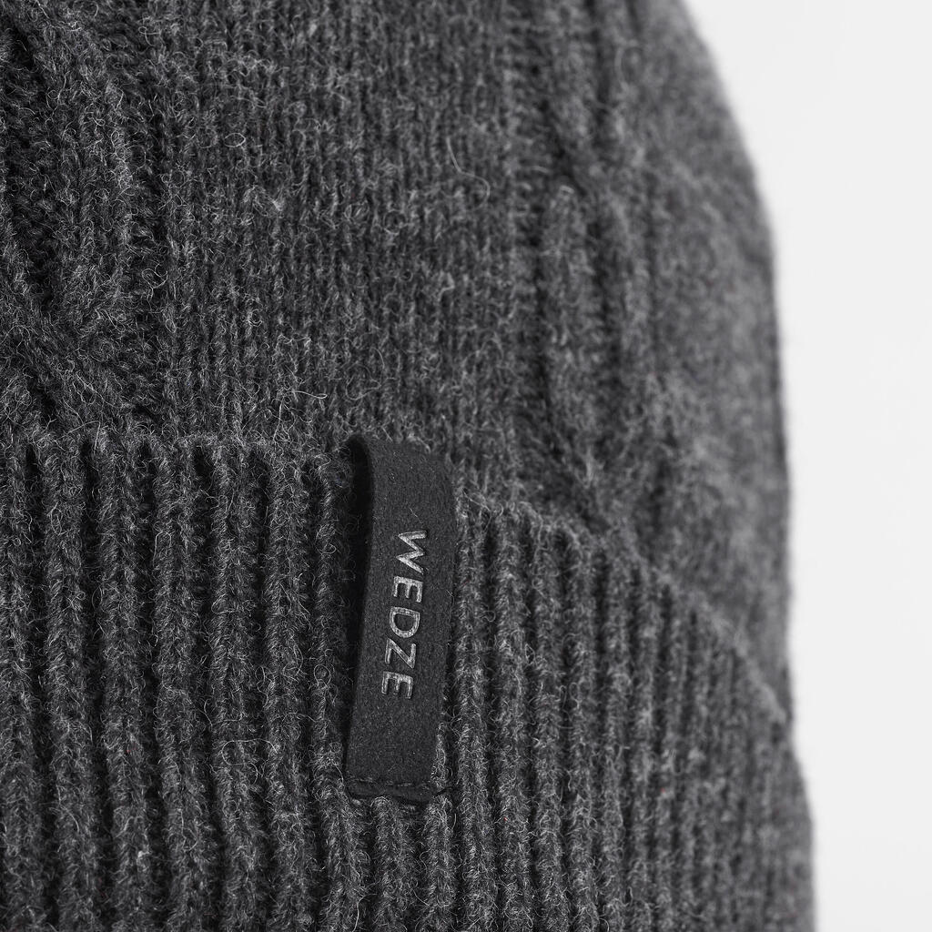 ADULT CABLE WOOL SKI HAT - GREY