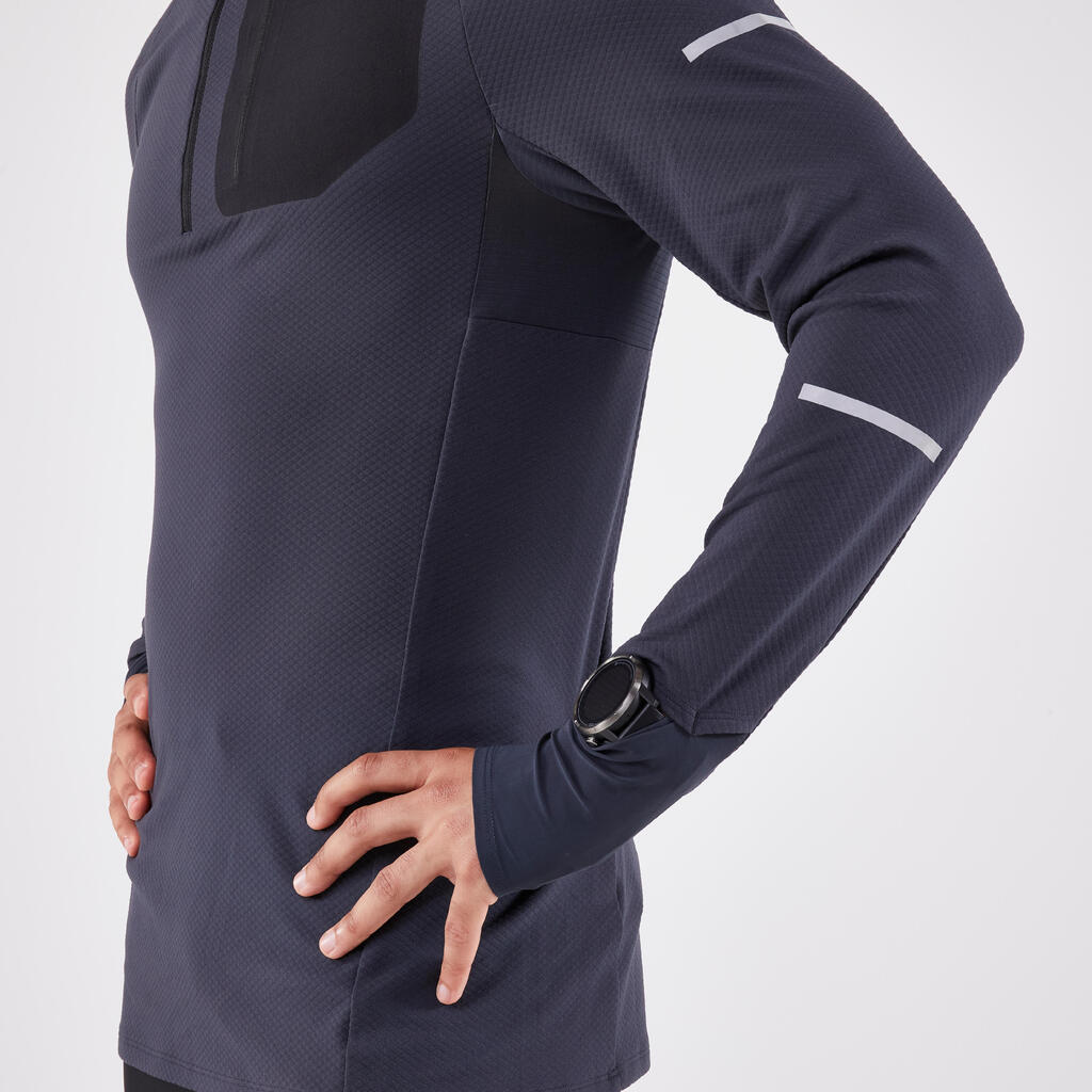 Men's KIPRUN Run 900 Long-sleeved Zip Warm Running T-Shirt - Black