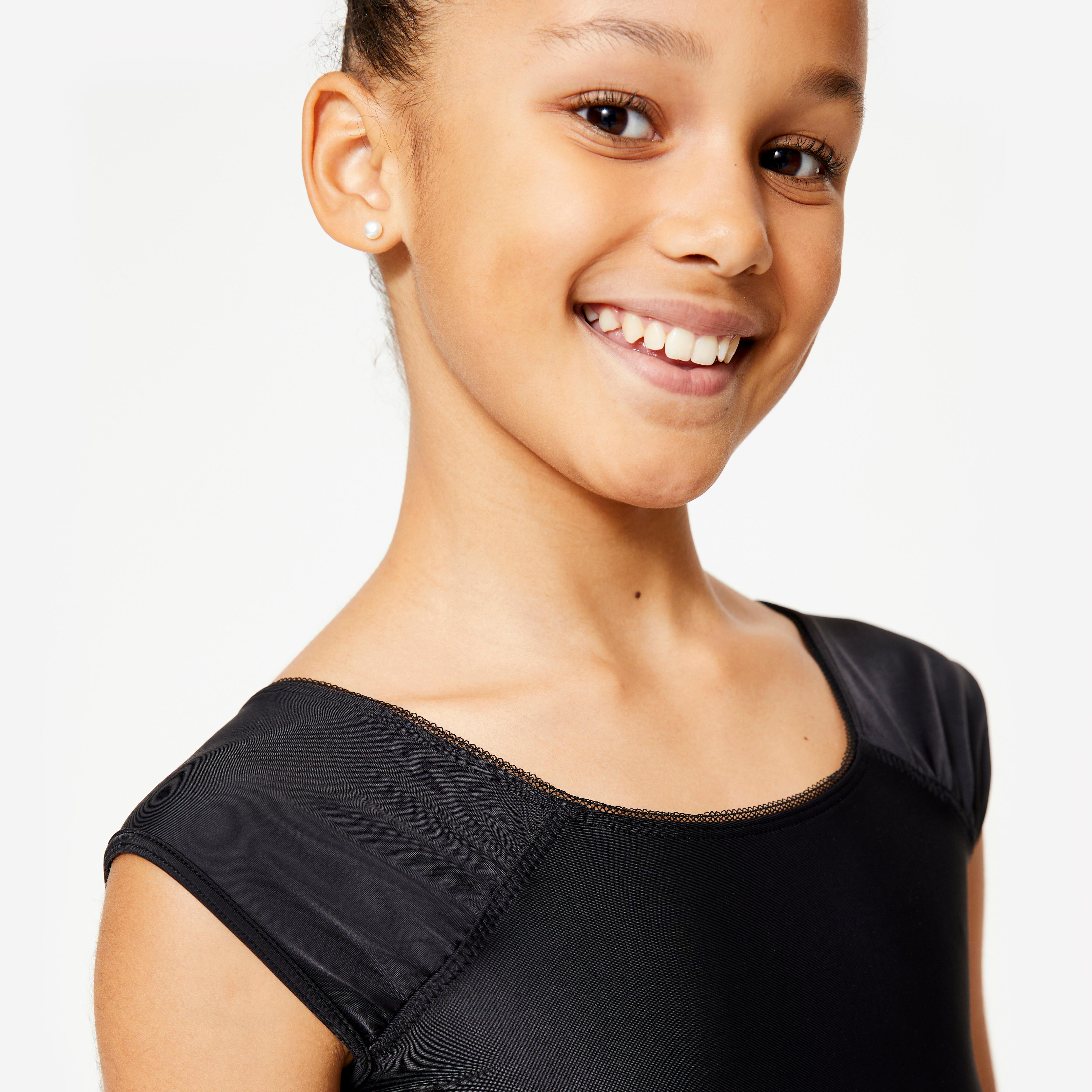 We've designed this dance leotard to make your daughter as pretty as she is graceful. Small pleats at the shoulders add elegance and finesse to this dancewear, emphasising the position of the arms. The collar of this leotard, a cross between a square and a scoop, is topped with a delightful embroidery-effect border. A detail that further enhances the position of the head.