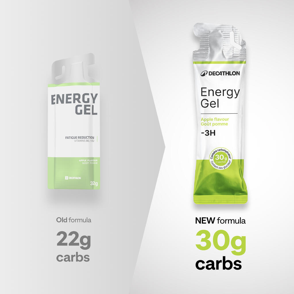 30g of carbohydrate in an energy gel.Larger size for greater energy intake in one snack!And vitamins B1, B6 and B12 to prevent fatigue*.