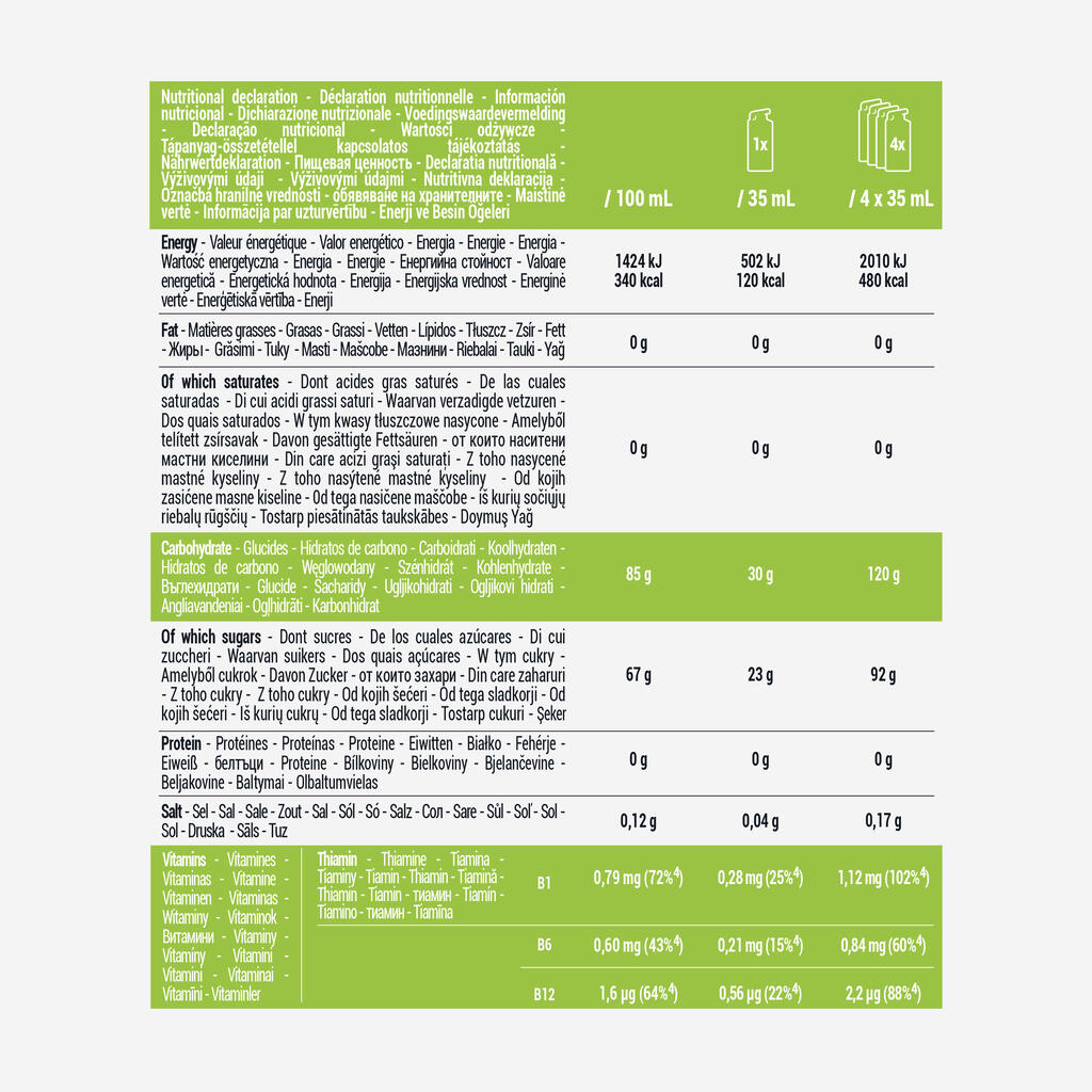 Nutritional values: 100g | 46g (=1 energy gel, 35ml)