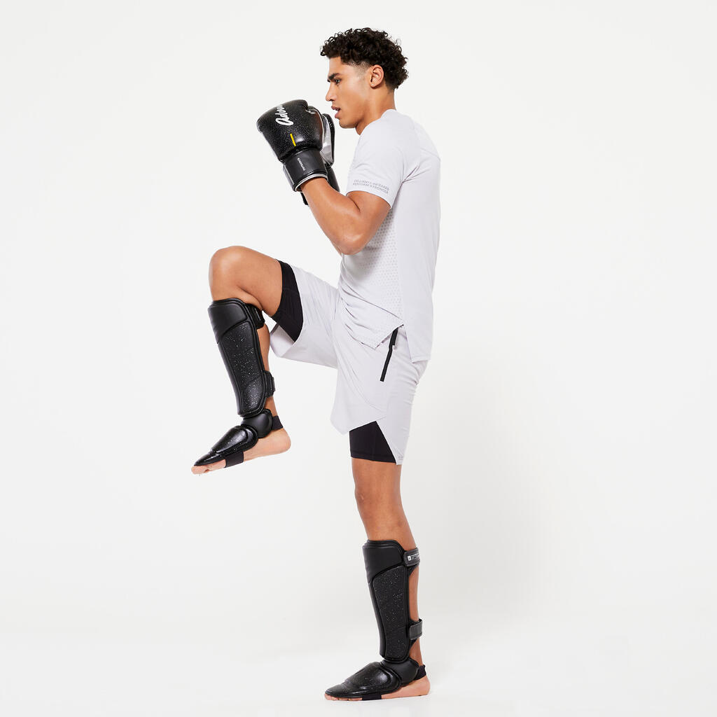 Check out this shin-foot guard for adults intensively practising Muay-Thai, kickboxing, or MMA. It absorbs impacts and protects the joints.