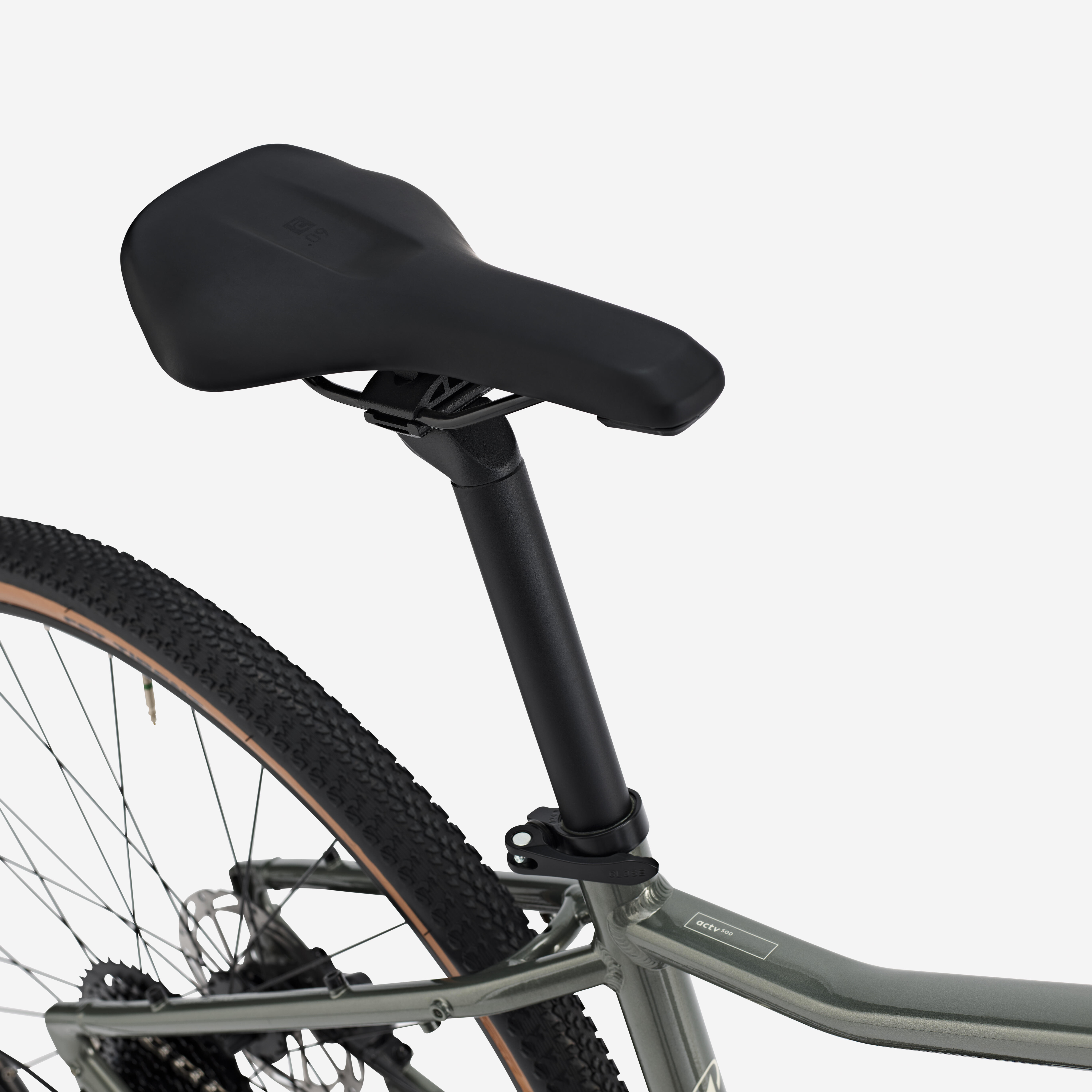 Many cyclists use the ACTV 500 both for nature outings and getting around town.In the aim of reducing the risk of theft in town, we chose to fit the ACTV 500 with anti-theft wheel axles (5 mm BTR key) and a quick-release seat clamp collar.We recommend you include a multitool in your anti-puncture kit (ref.8386669) so you can remove your wheels.If necessary, you can easily replace the seat clamp collar and wheel axles.