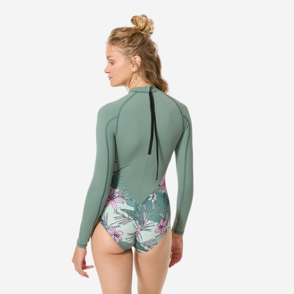 We have created the Dani 1-piece for women wanting to surf waves of more than one metre without the risk of losing their swimsuit in the shore break or when duck diving under breaking waves. Ideal for surfing in warm water, its cut has been designed to limit chafing against the board and wax. Its feminine seams enhance the silhouette and do not crush the bust. Featuring a long back zip and a pull tab, it is easy to take on and off.