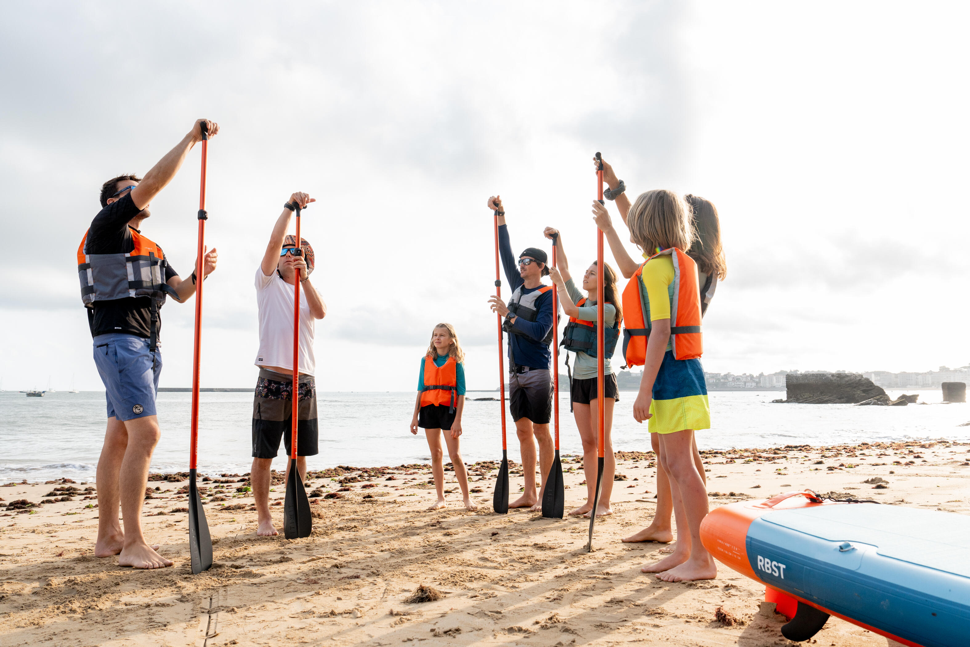E.g.: for a person 1.50 m tall, adjust the paddle to 1.70 m