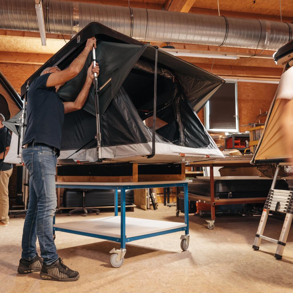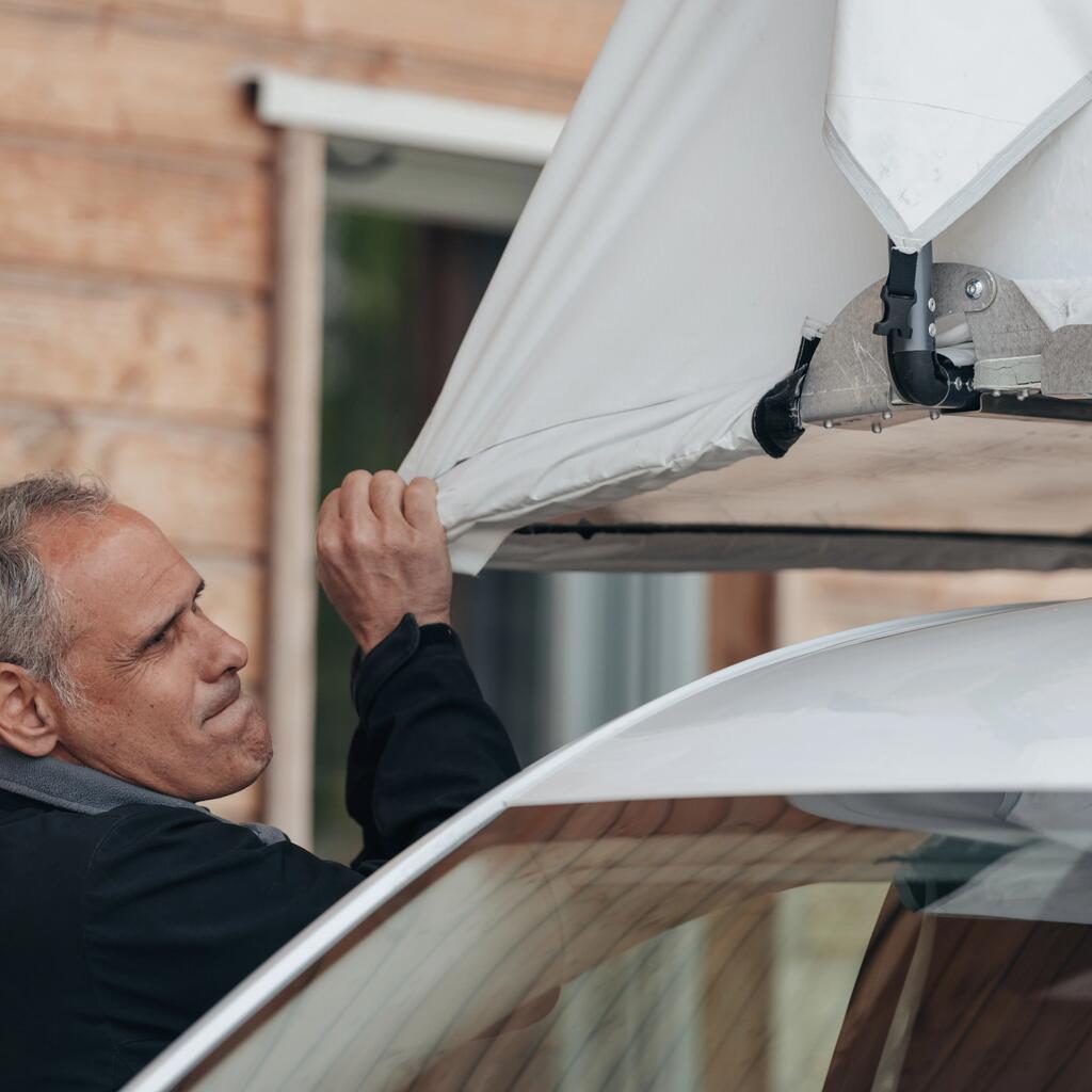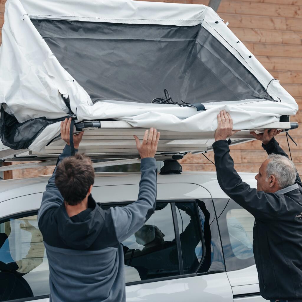This Quechua x NaïtUp rooftop tent is the result of a collaboration between 2 French experts in the field of the rooftop tent, Naïtup and Quechua. The shared expertise of each person has allowed us to develop a very compact, quick and easy to pitch rooftop tent.