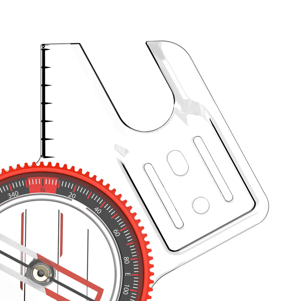 "So, 2 cm on the map, at a scale of 1:15,000, means 30,000 cm, so 300 m! You need to be good at doing sums in your head!"As well as the linear graduation, our compass also has angular graduation, located at every 2 degrees on the rotating capsule, so you can take bearings.