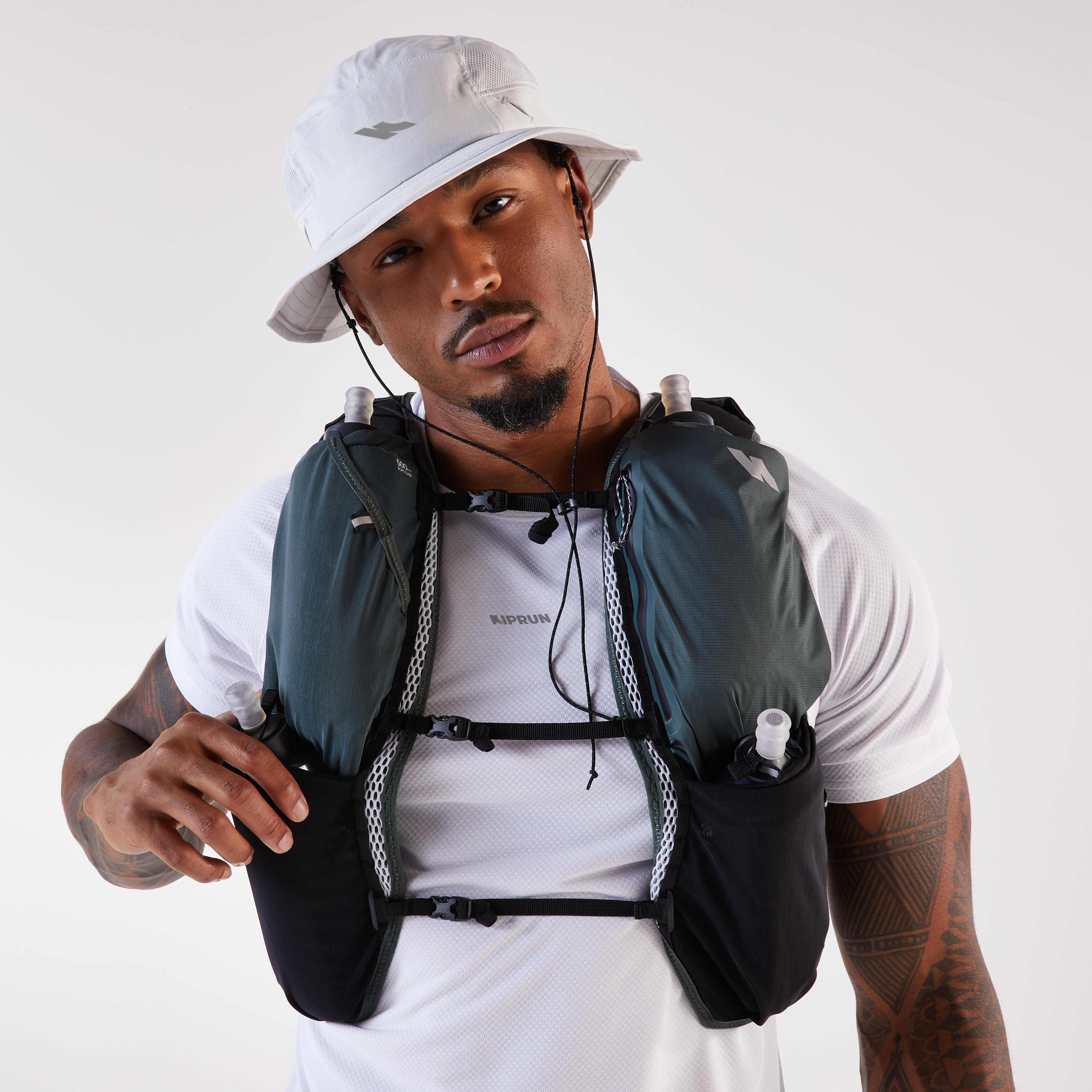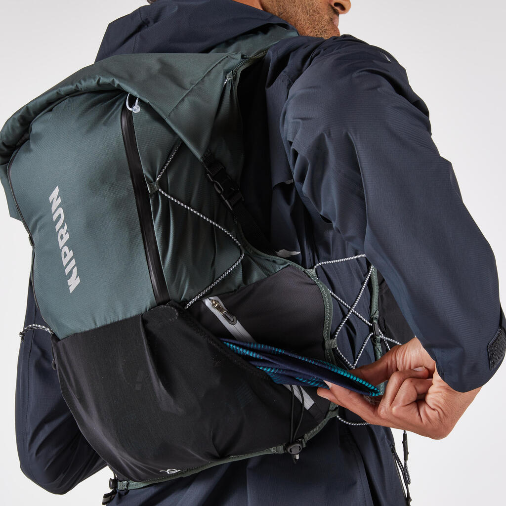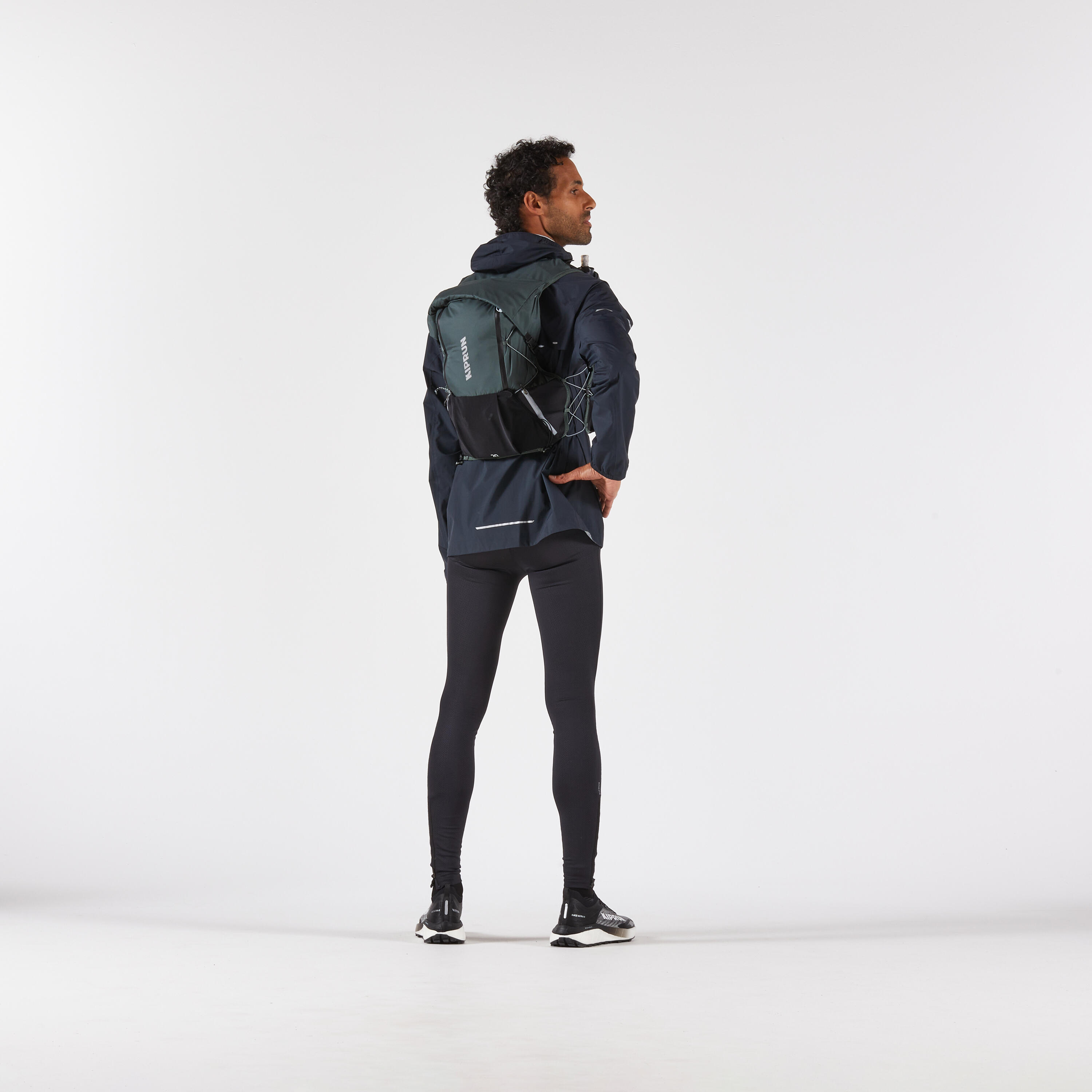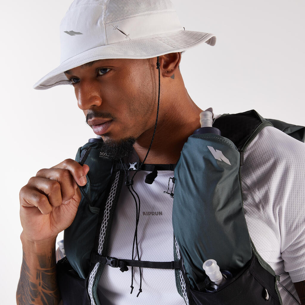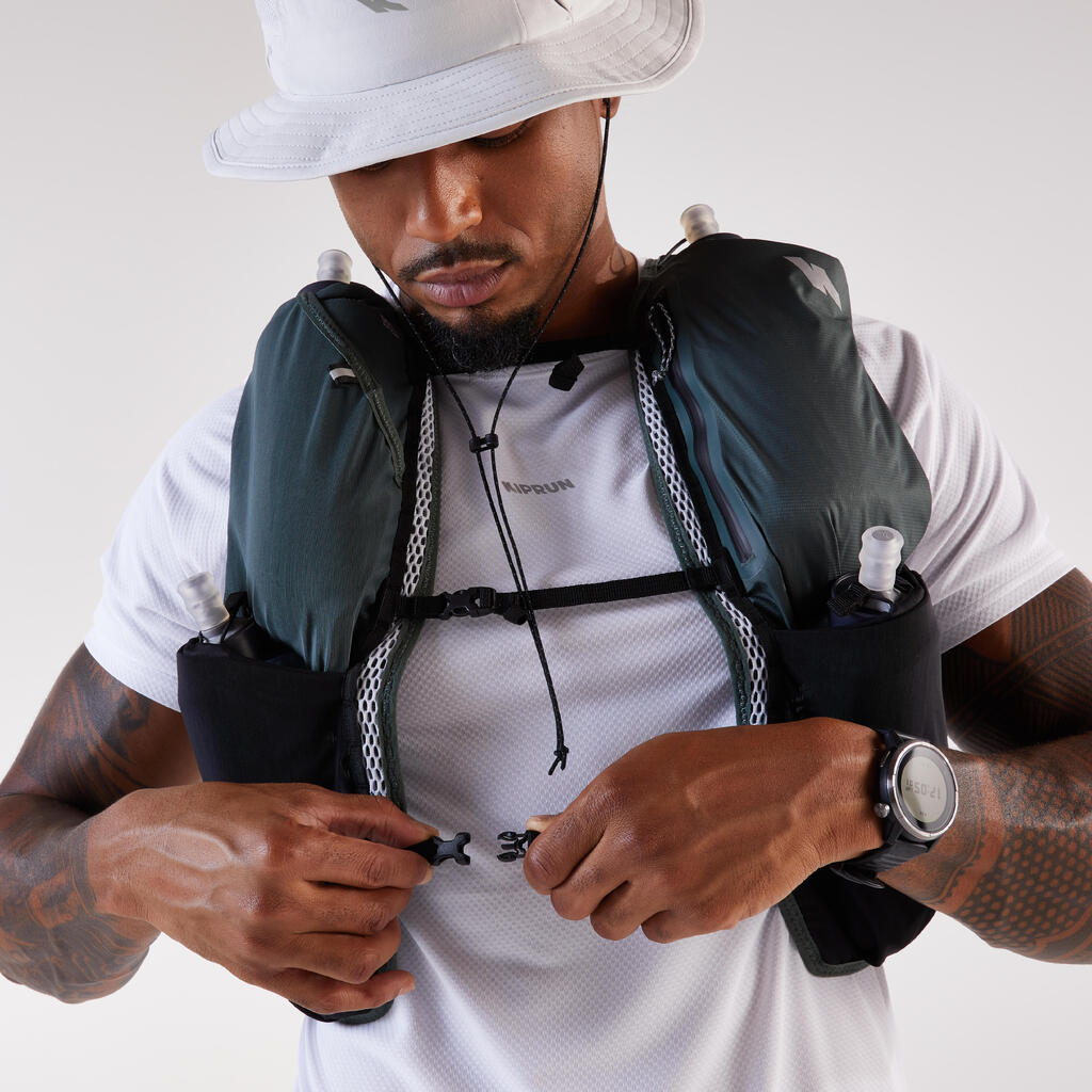 With a 2-litre water bladder pouch at the back (included) and 4 front pockets for 500 ml bottles, your bag can carry up to 4 litres of water. Considering that you drink an average of 500 mL of water per hour while trail running, that gives you 8 hours of autonomy.