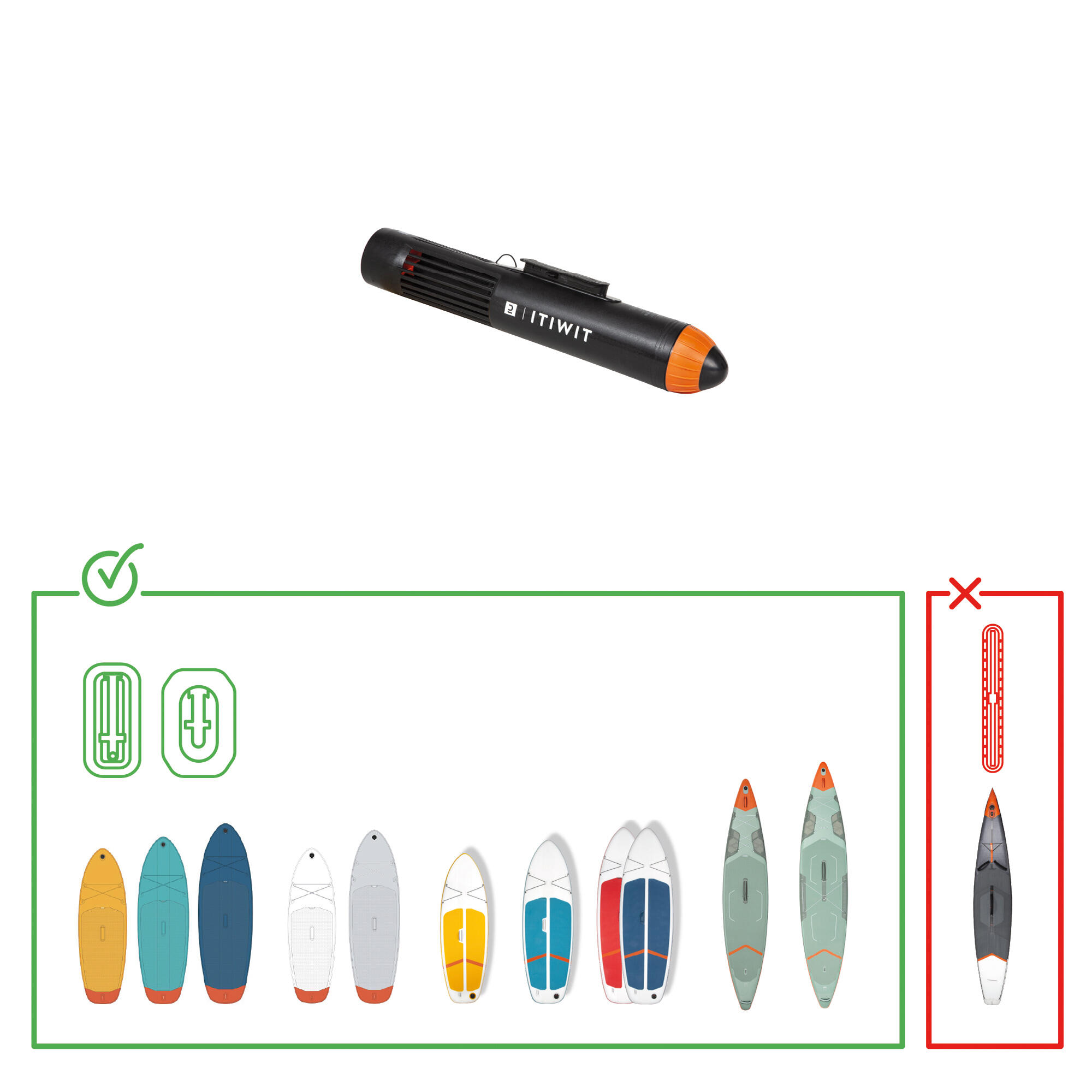 The electrical assistance motor kit is compatible with all Kayak and Stand Up Paddle touring vessels fitted with sliding fin boxes.