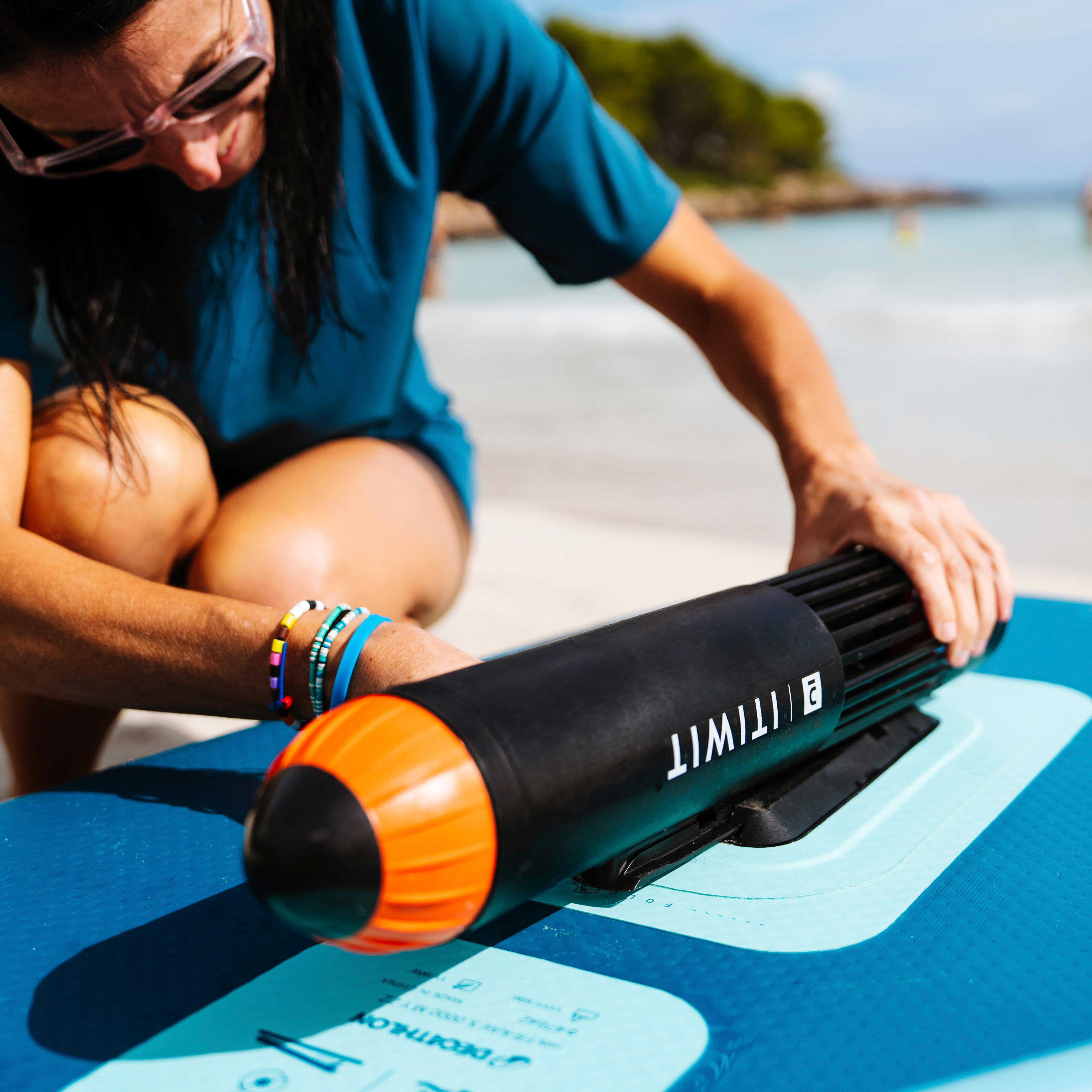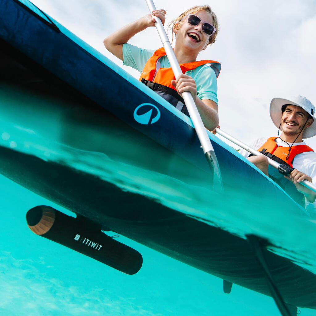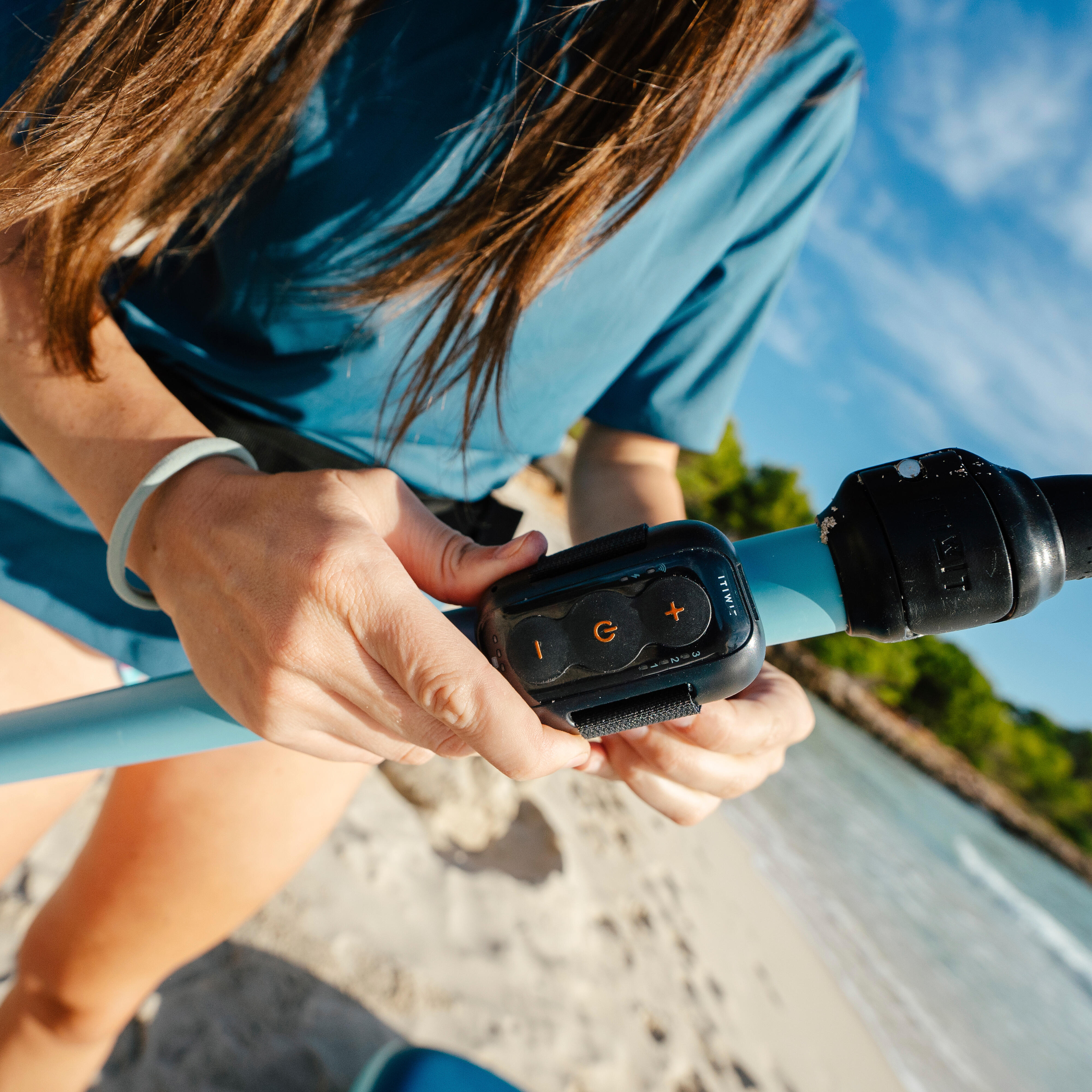 Electric assistance is activated by simply pressing the central button on the remote control after choosing the desired assistance speed (1, 2 or 3). Nevertheless, we have designed this product as a paddling aid and we strongly recommend that you paddle at the same time to get the most out of your outing and optimise battery life and distance covered.