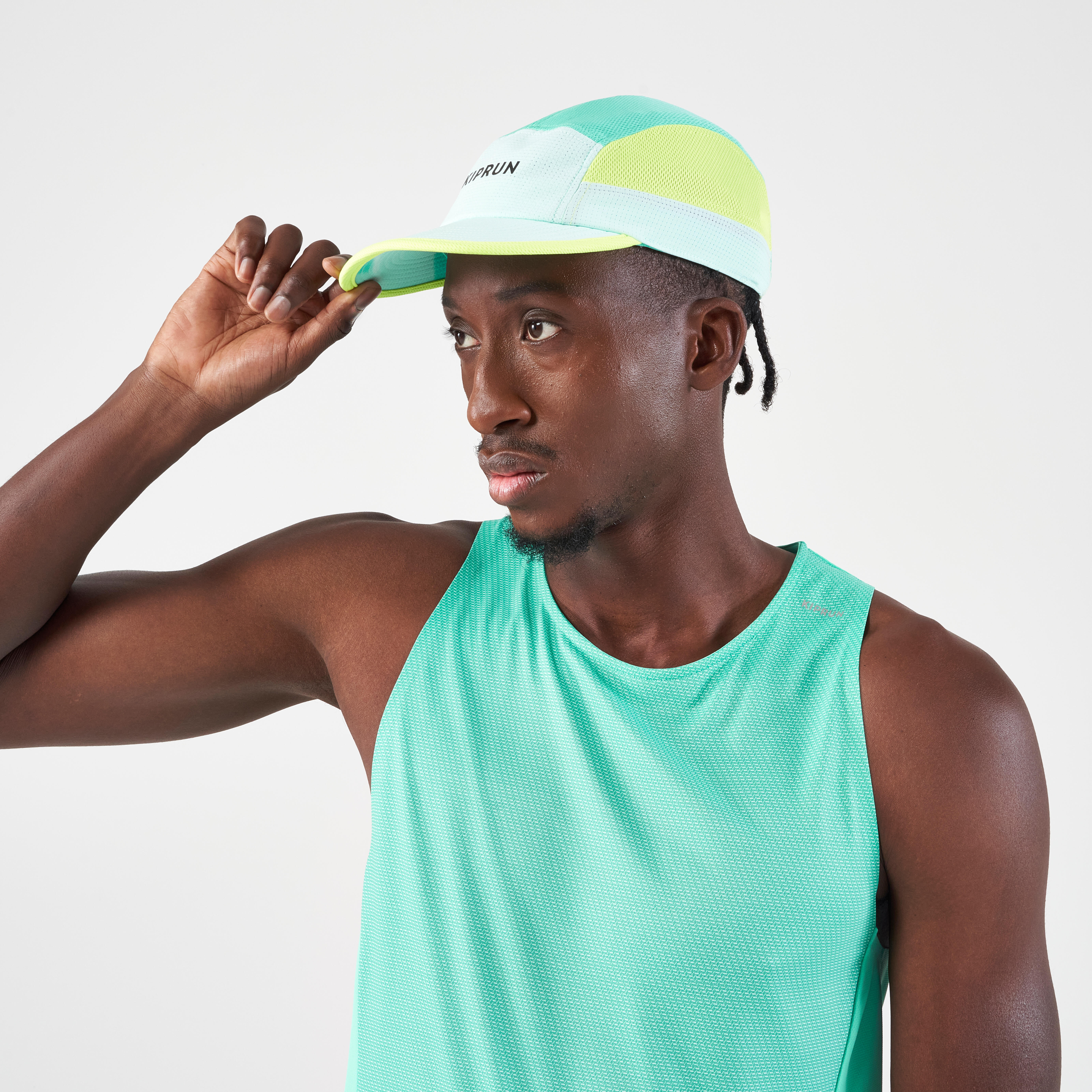 Unisex Running Cap - Kiprun 5 Panels Turquoise Yellow