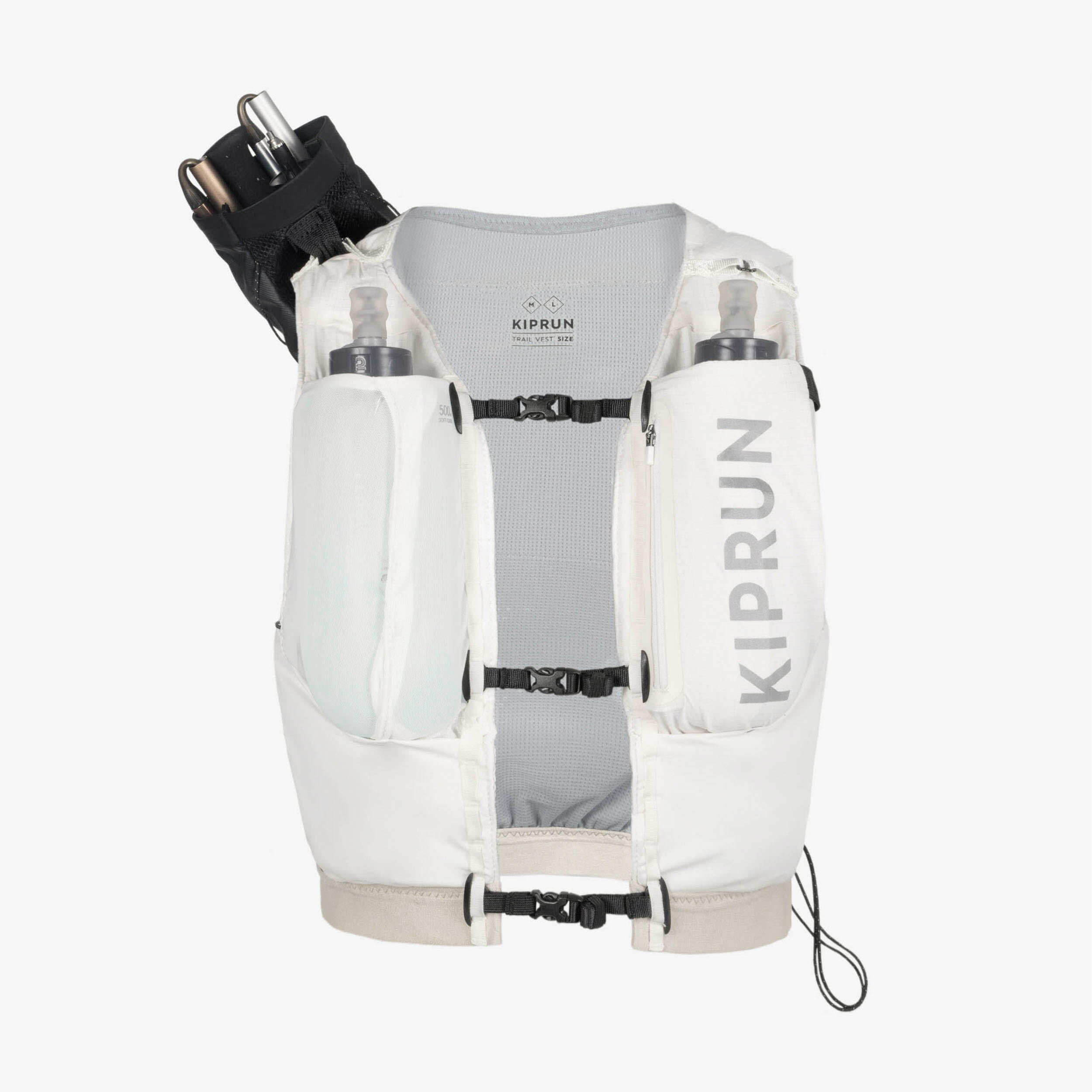 If you want to carry your poles with you, this vest has a fastening system on which you can attach the Kiprun trail running quiver (sold separately). Thanks to its very simple and clever fastening system, getting at your poles and storing them is a breeze.