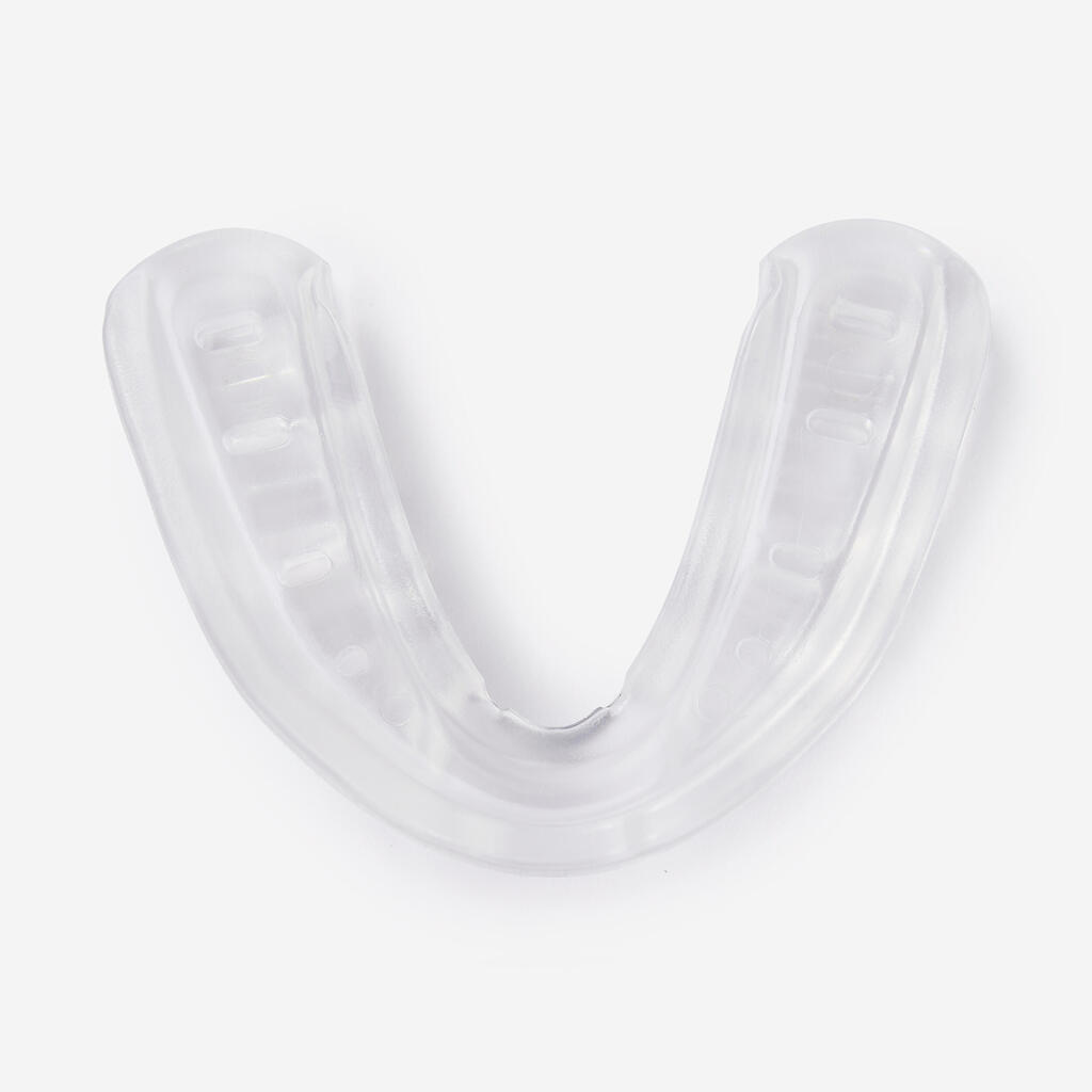 This mouthguard has been specially designed for kids under 10. It absorbs vibrations during impacts and stops your teeth knocking together.