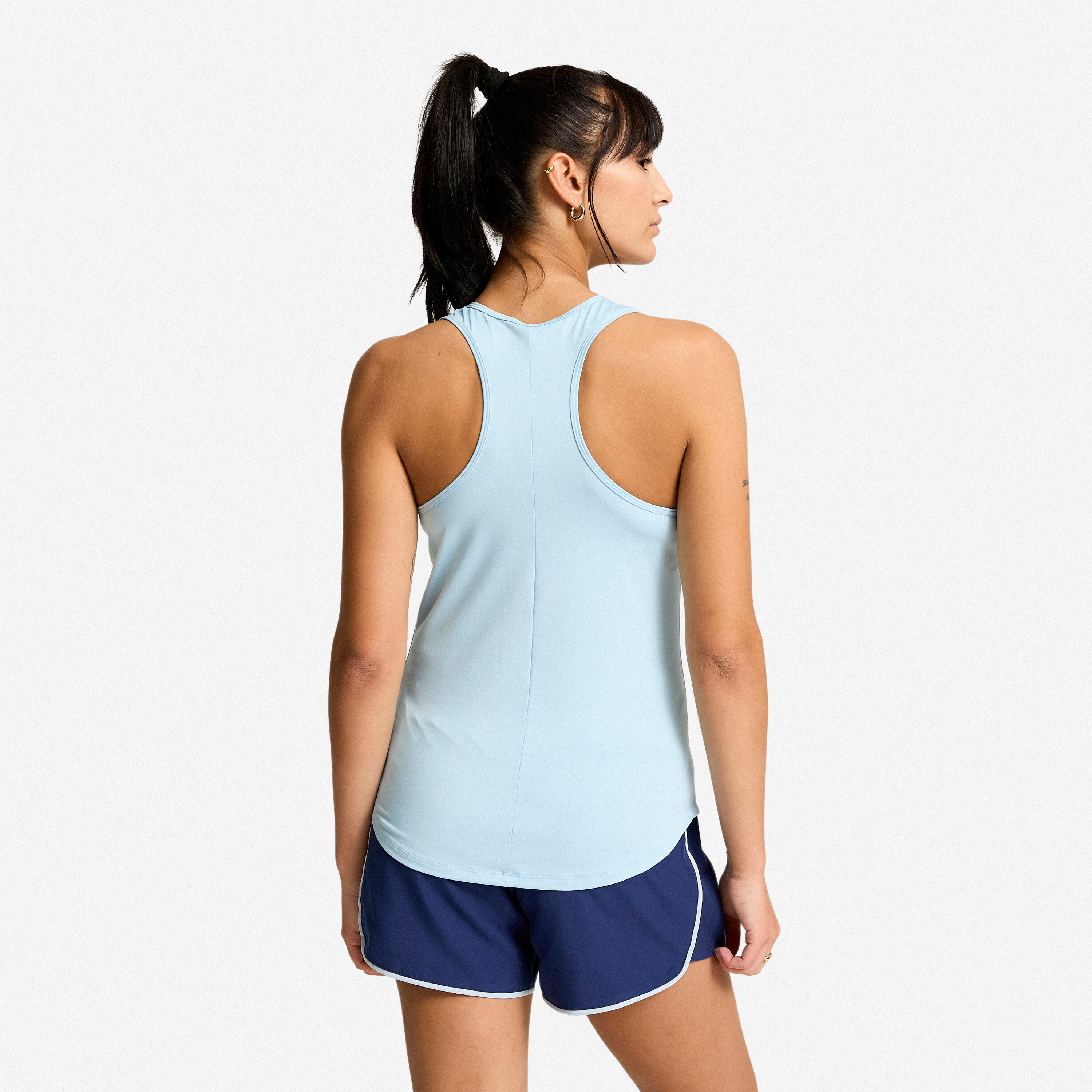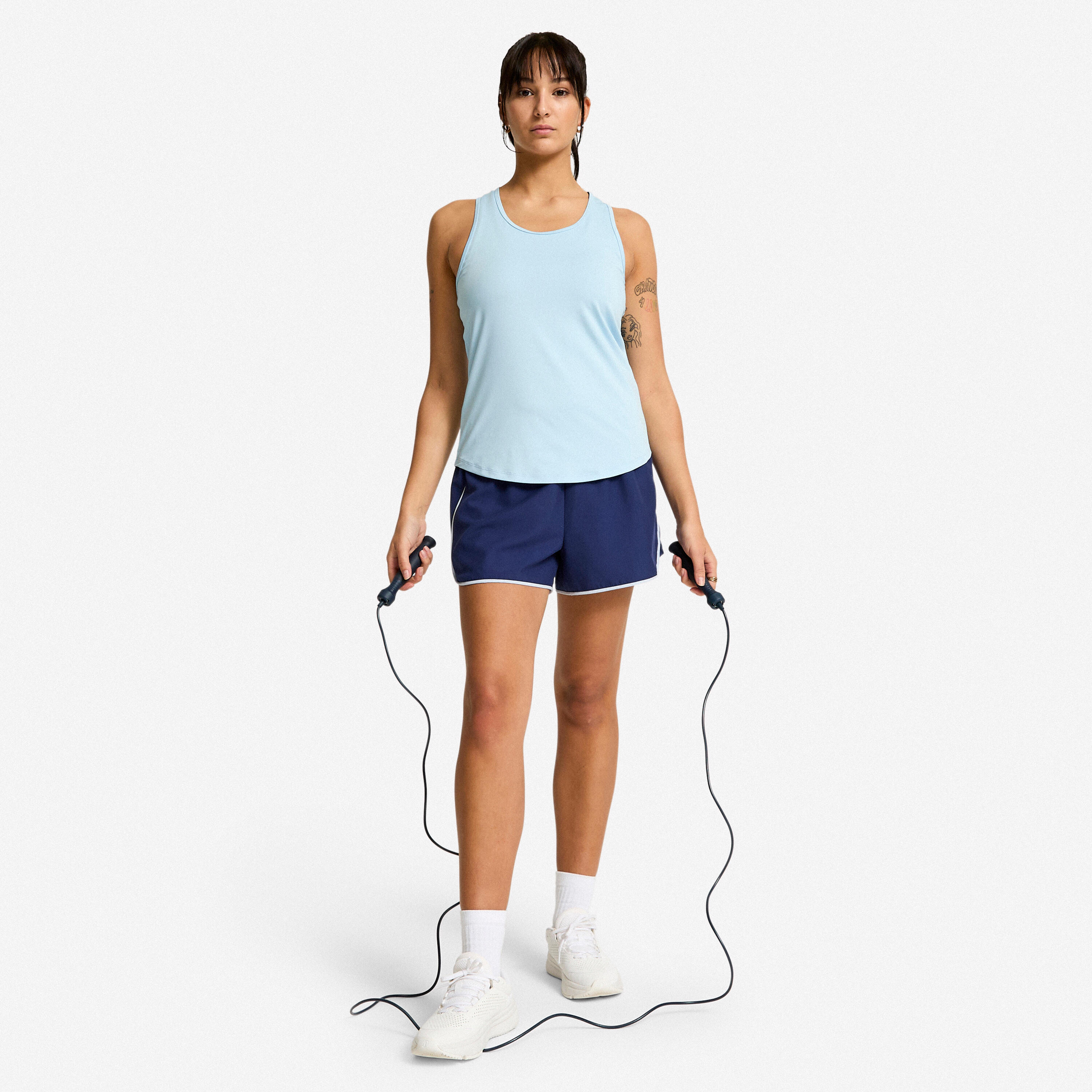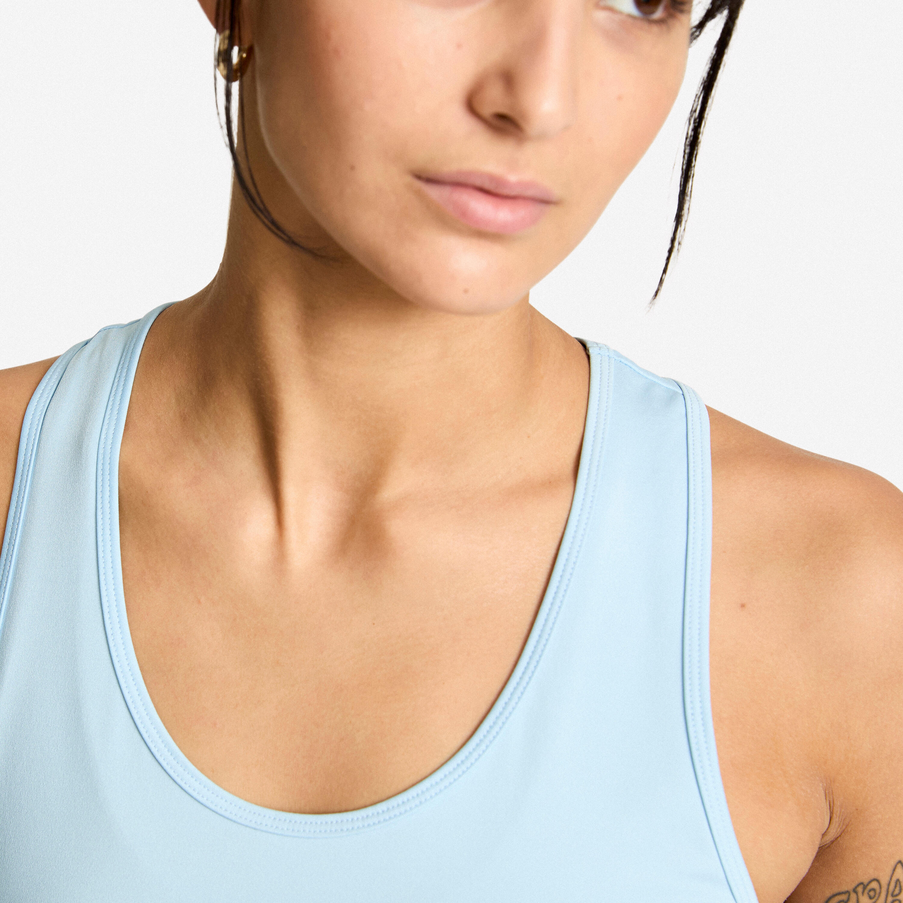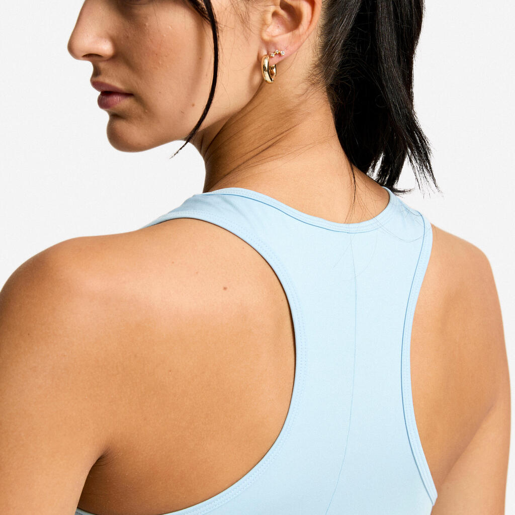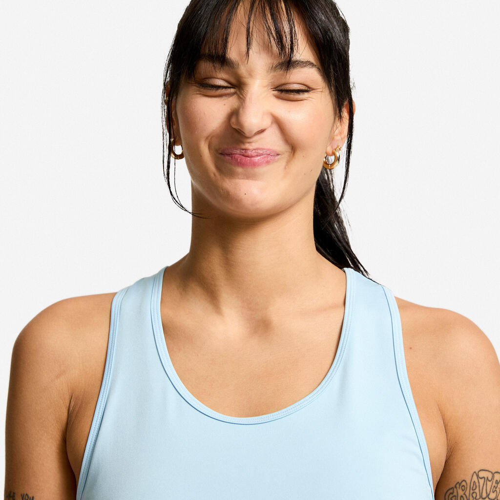 Basic, but not too basic! This tank top has so much going for it: its open neckline, well-selected finishing touches, and rounded hemline that provide a trendy, sporty style. Its muscle back frees up your shoulder blades for easy and unrestricted movement.