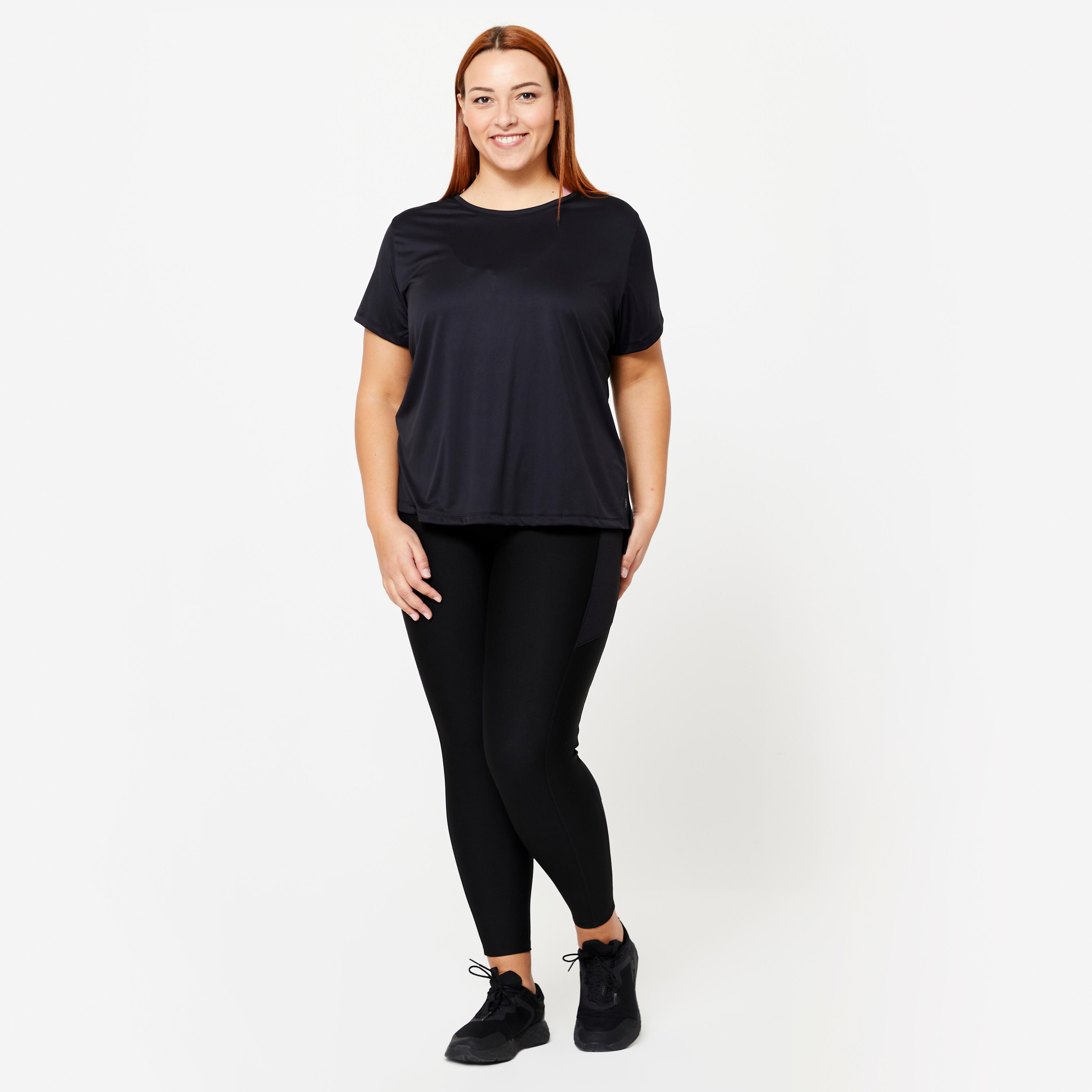This T-shirt's shape is designed for curves (sizes 3 to 5 XL) and it has everything you need for exercise: light, breathable fabric and a longer cut.