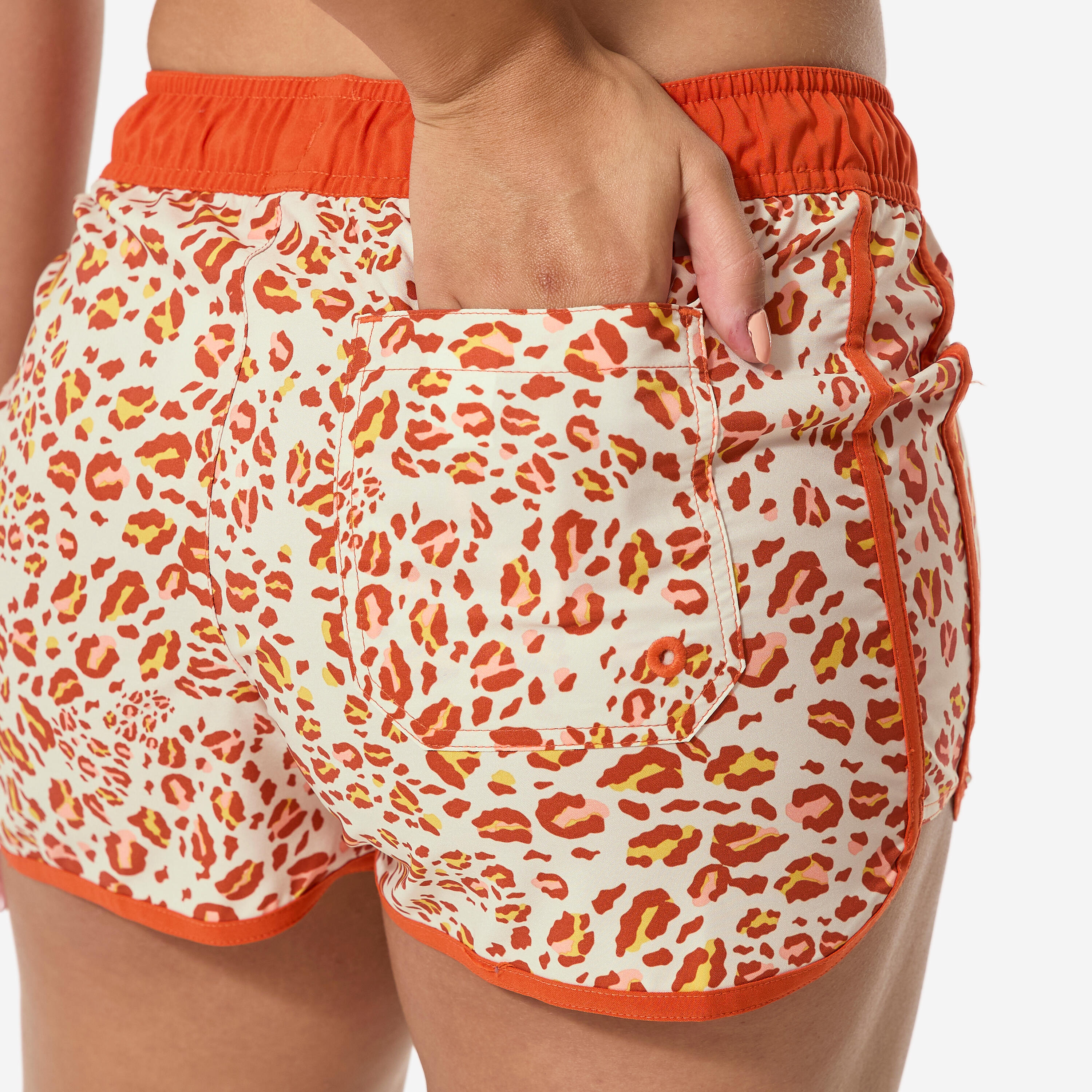 Women’s surfing leopard swim shorts, Tini Graou beige