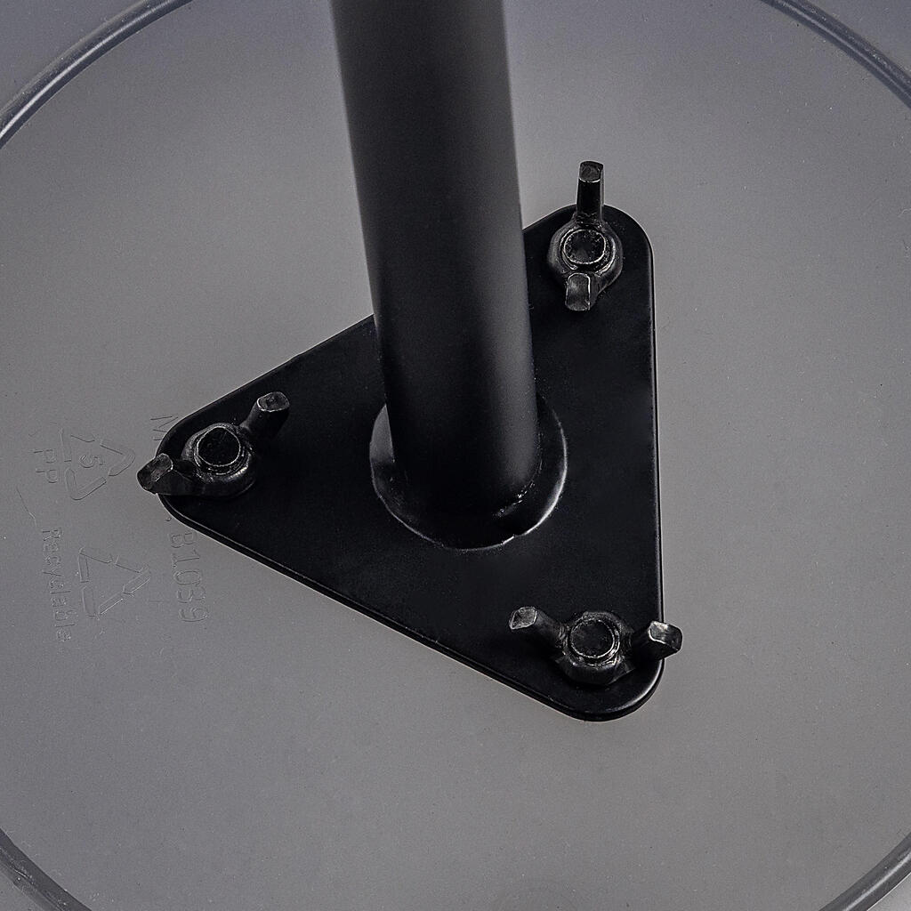 To keep it stable and prevent shaking during use, the clear base of the hopper is supported by a triangular steel reinforcement (2.5 mm thick).
