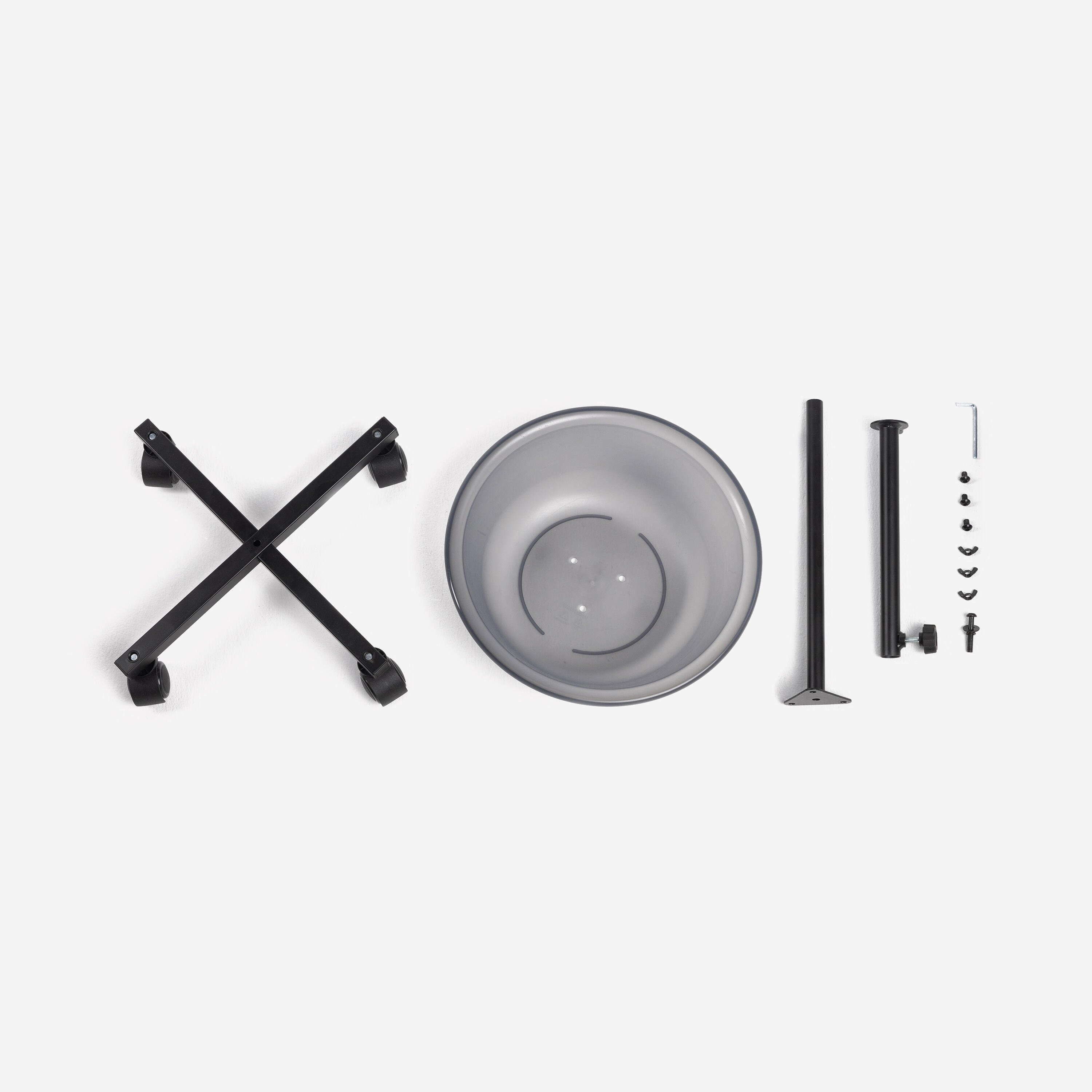 This rolling ball hopper has a low-key design to suit most table tennis clubs and associations. The matte black frame and frosted grey basket will fit easily into any décor.