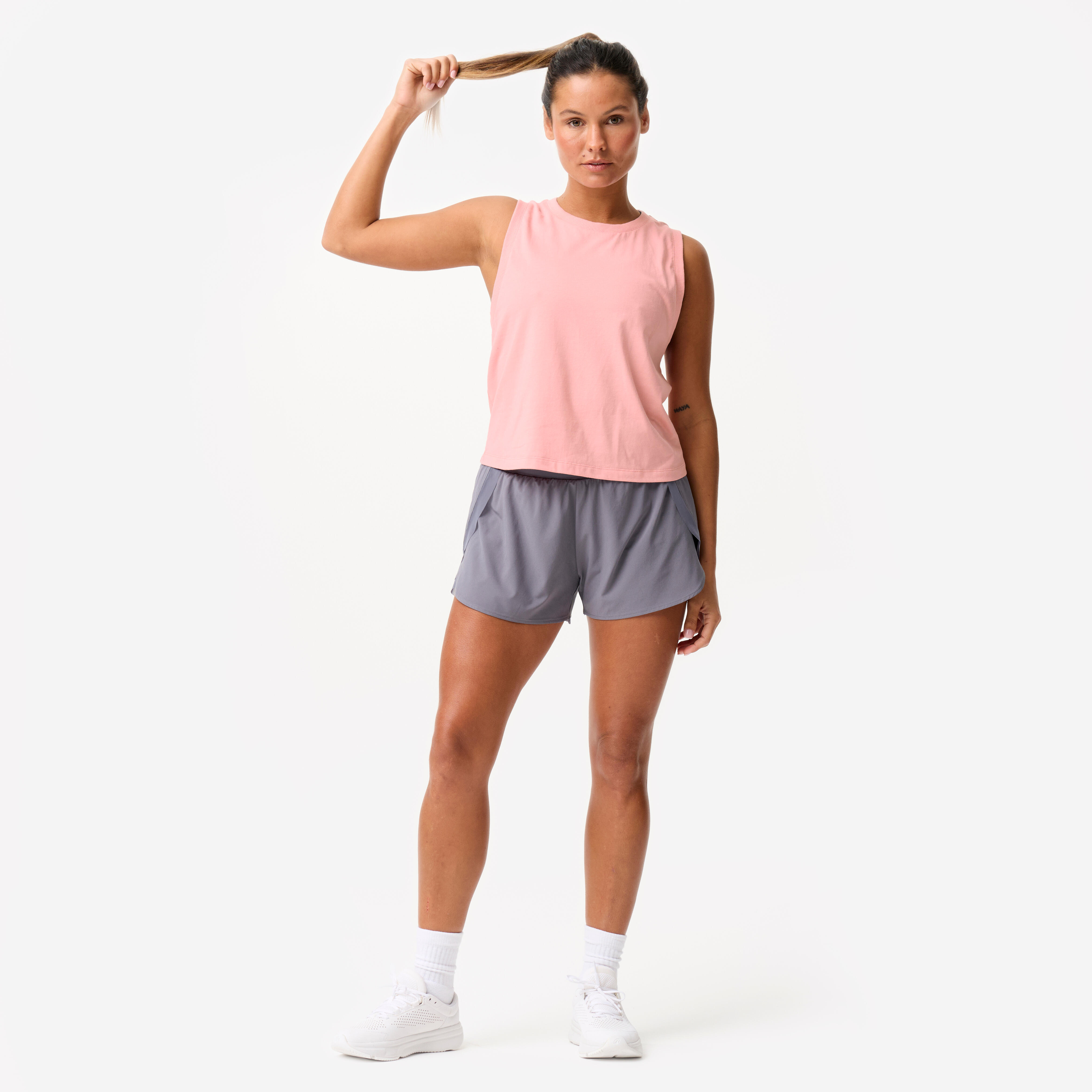 This slightly cropped tank top gives you an athletic and trendy look for the gym and every day.