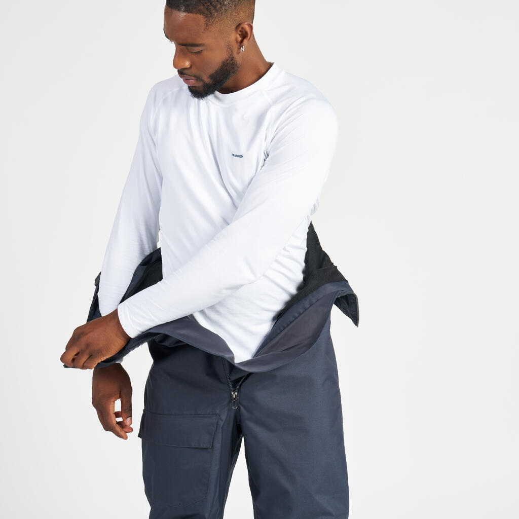 - The waterproofing of the dungarees has been tested in showers of 60 litres of water/m²/hour for 2 hours