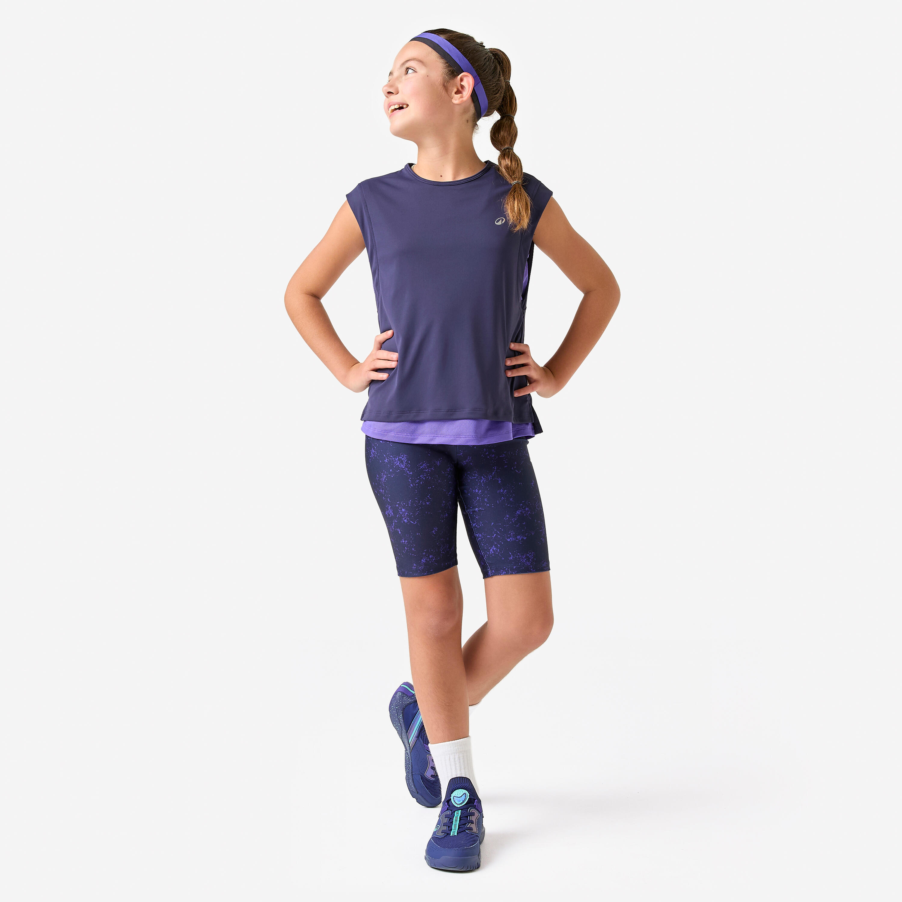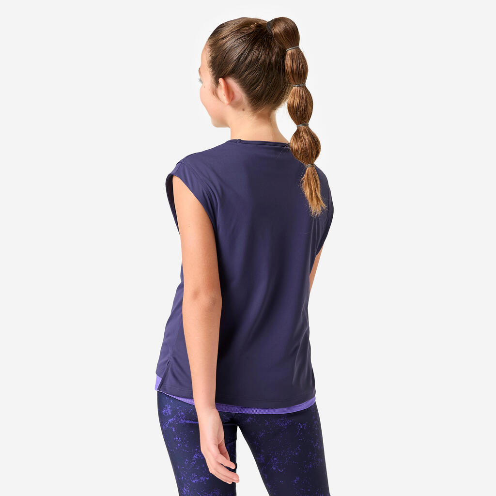 This girls' 2-in-1 T-shirt is available for young athletes aged 5/6 to 14/15, from 113 to 166 cm tall: – 113-122 cm: 5-6 years;