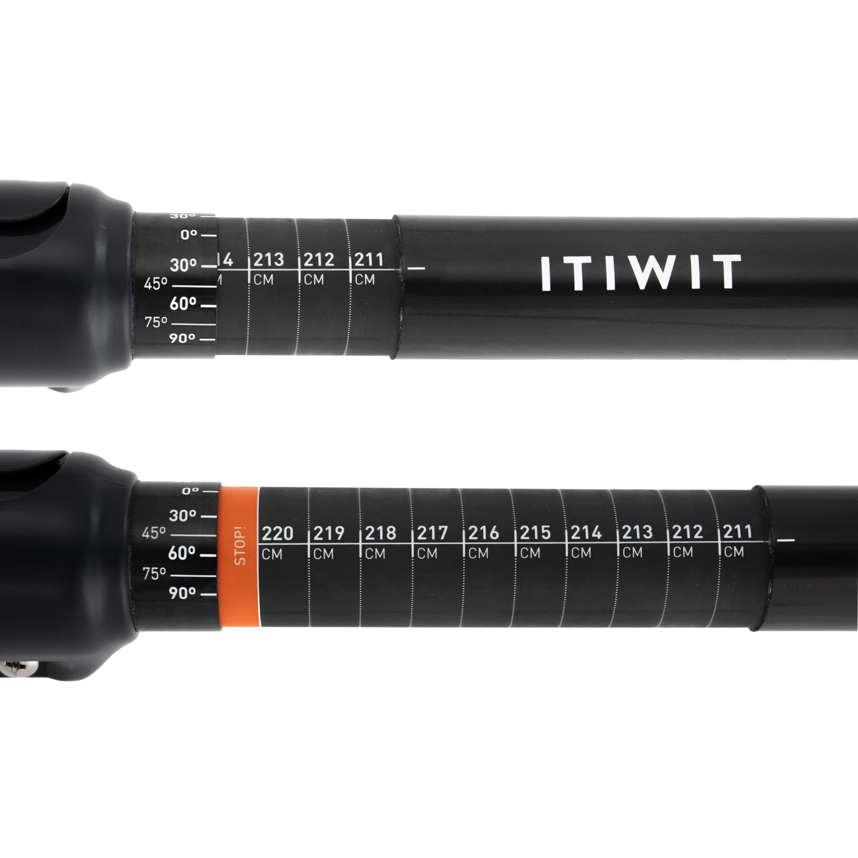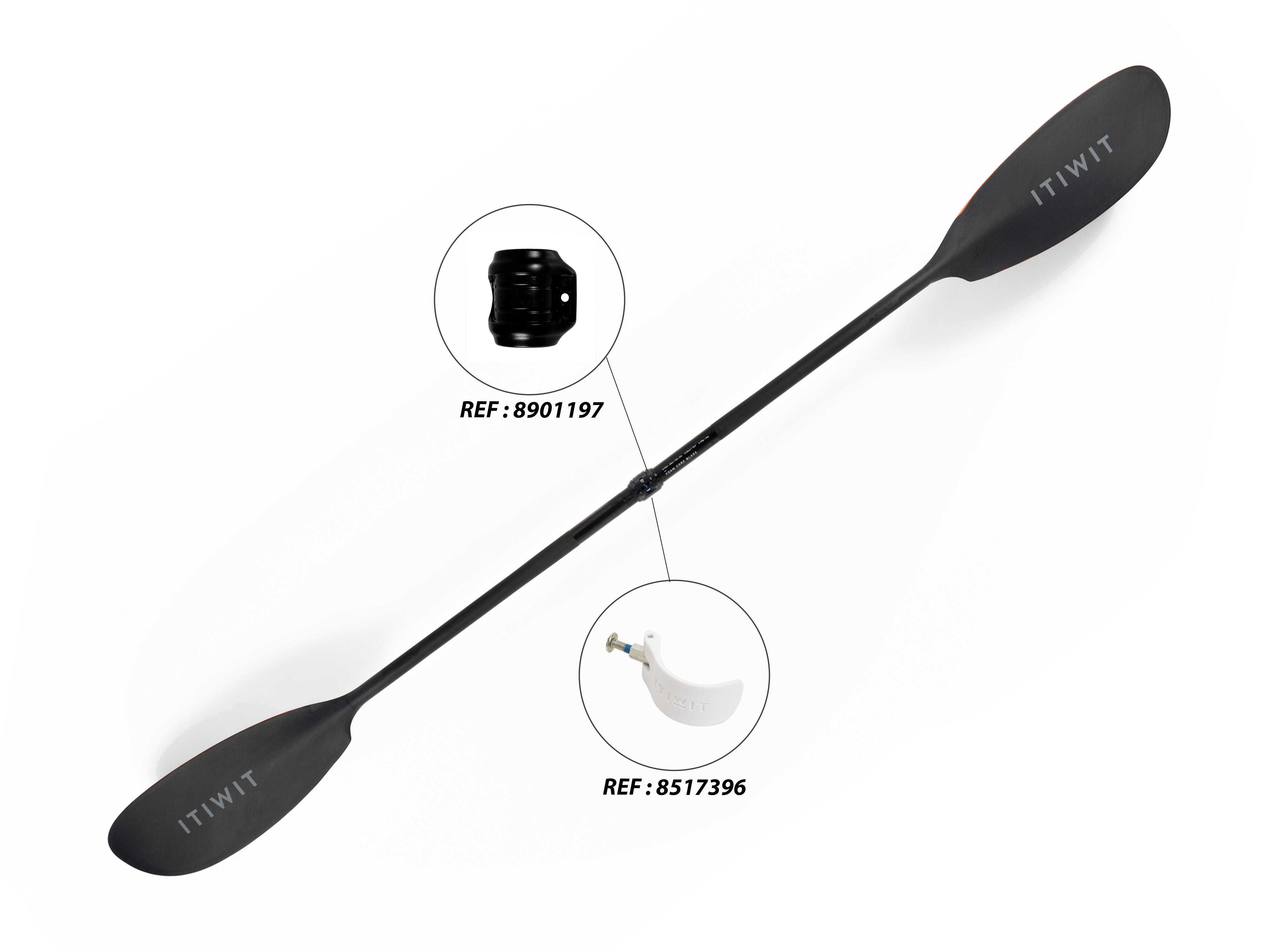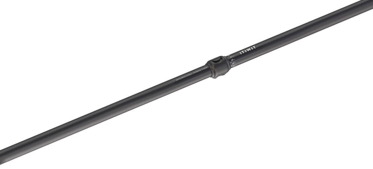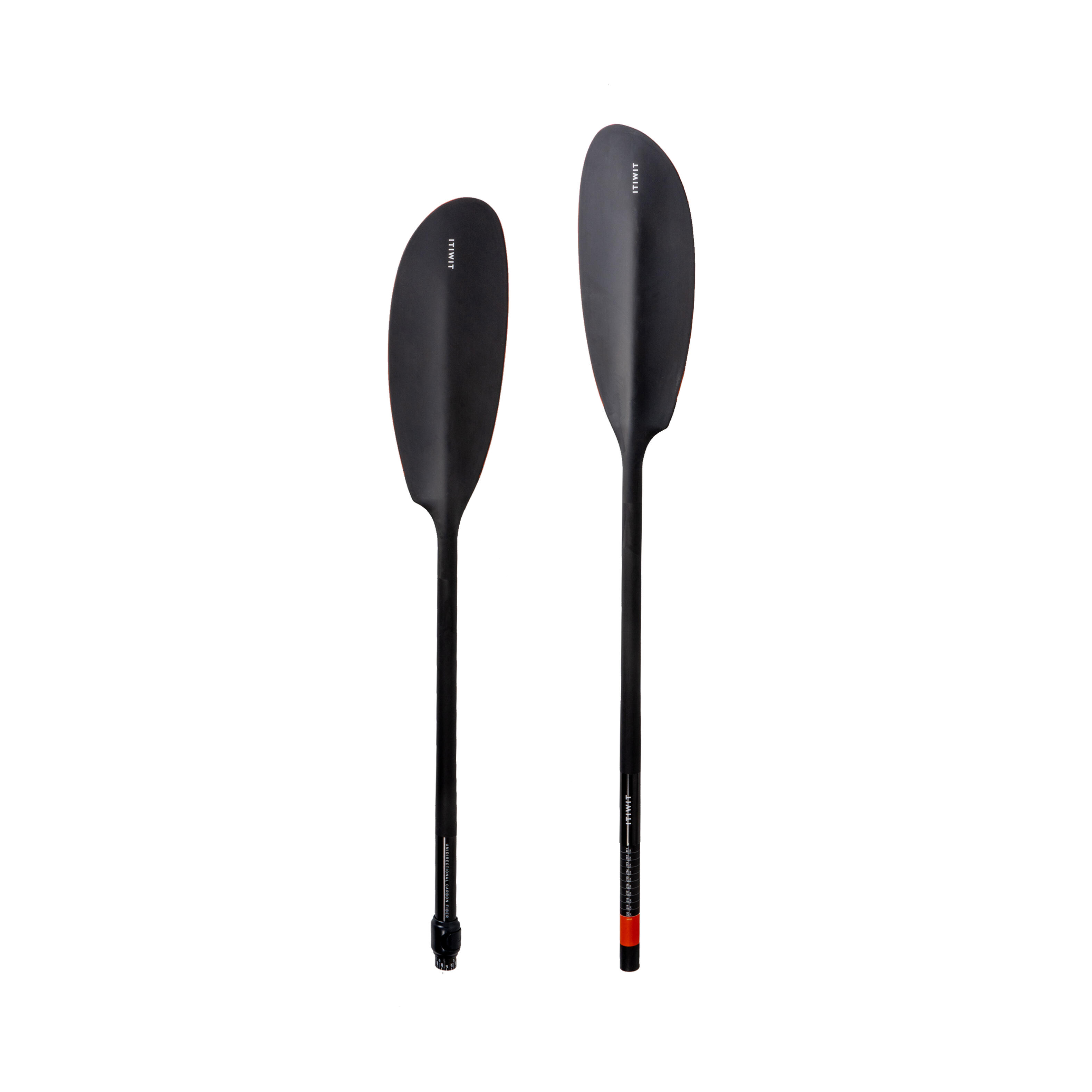 The lightweight paddle (670 g) can be dismantled: 2 parts, with adjustable angle and size (210 - 220 cm). High comfort with its double paddle grip and pleasant foamed blades at the water inlet/outlet.