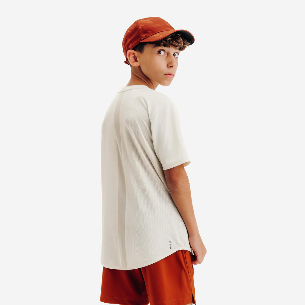 This unisex T-shirt has been tested and approved by both boys and girls playing tennis.