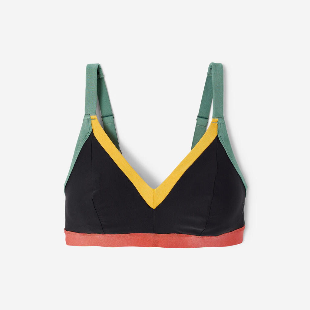Support and a sporty design are the order of the day! Built-in bra and adjustable straps for a firm hold This bikini top is easy to put on and take off thanks to its buckle in the back.