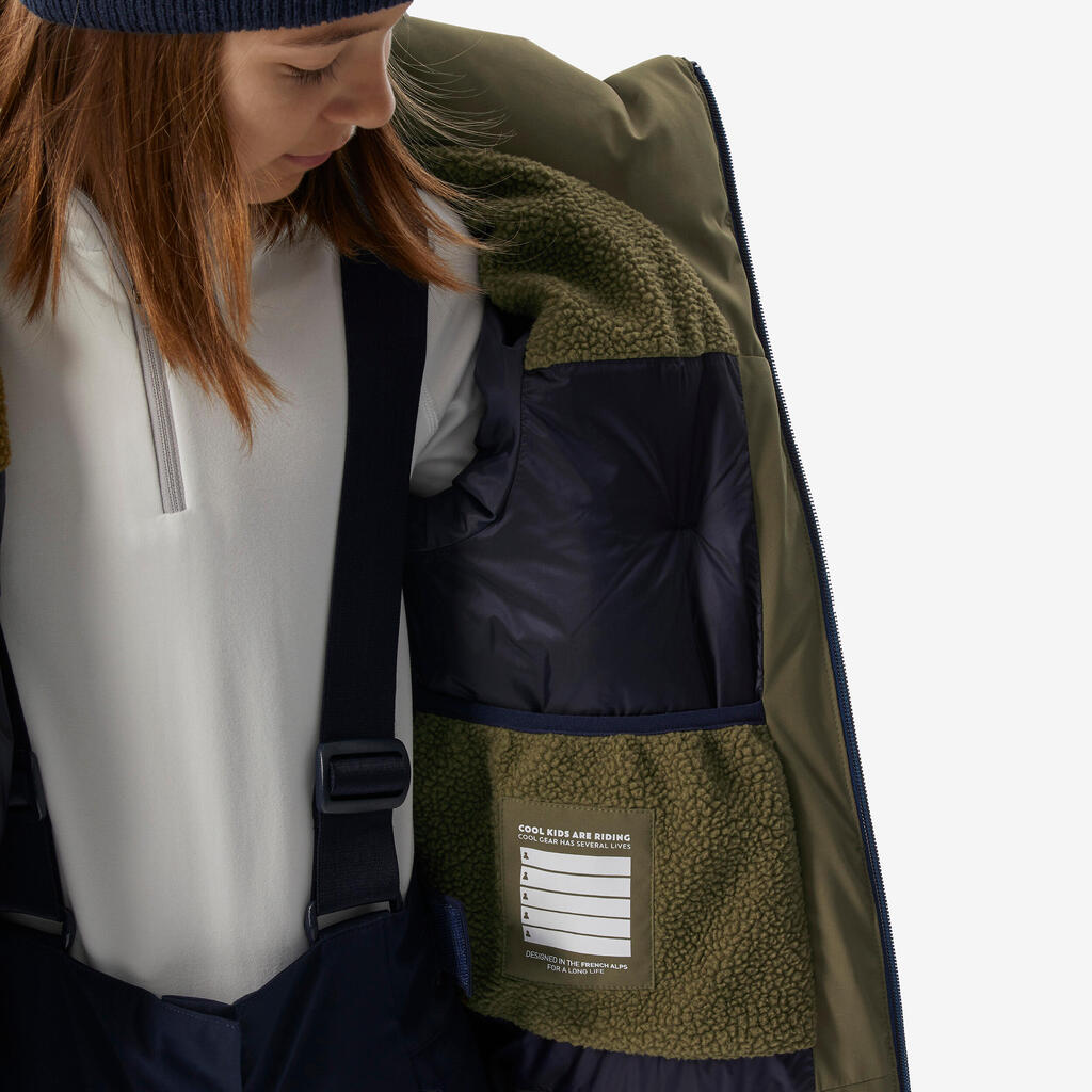 Girls’ warm and waterproof padded ski jacket, 6-14 years, 500 WARM - Khaki
