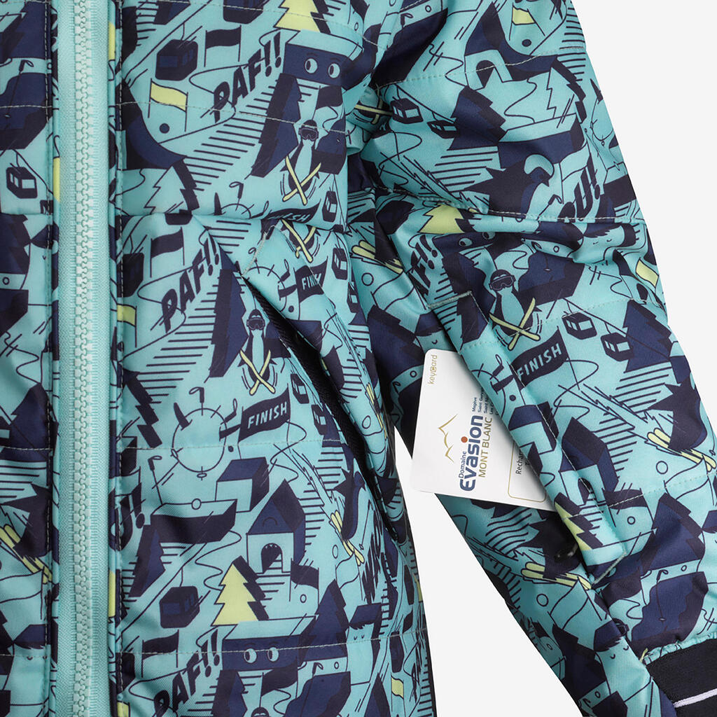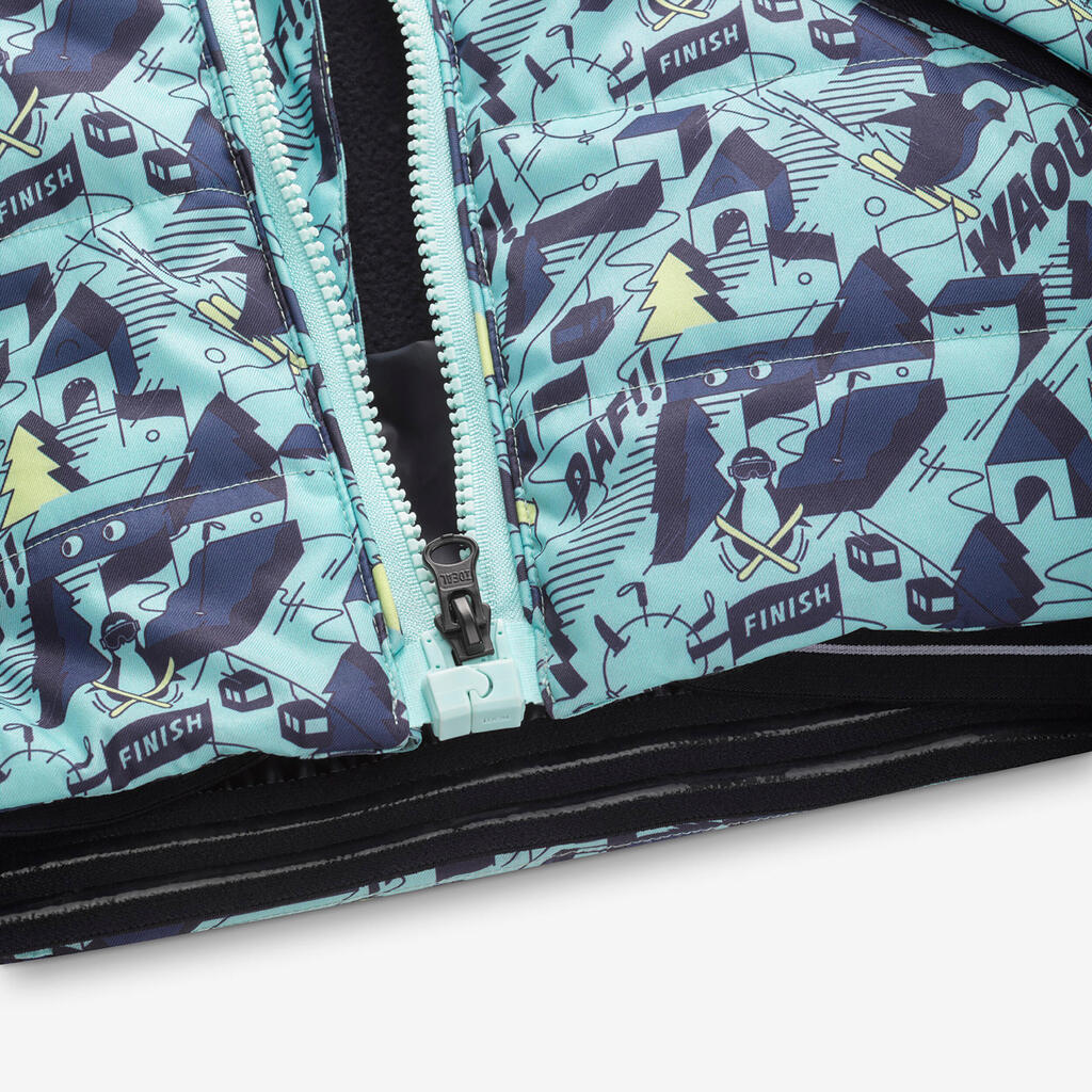 The snow skirt is a protective system located at waist level. On this jacket, it closes automatically when the child fastens their ski jacket. It prevents snow and draughts from entering when practicing winter sports, especially in the event of a fall.