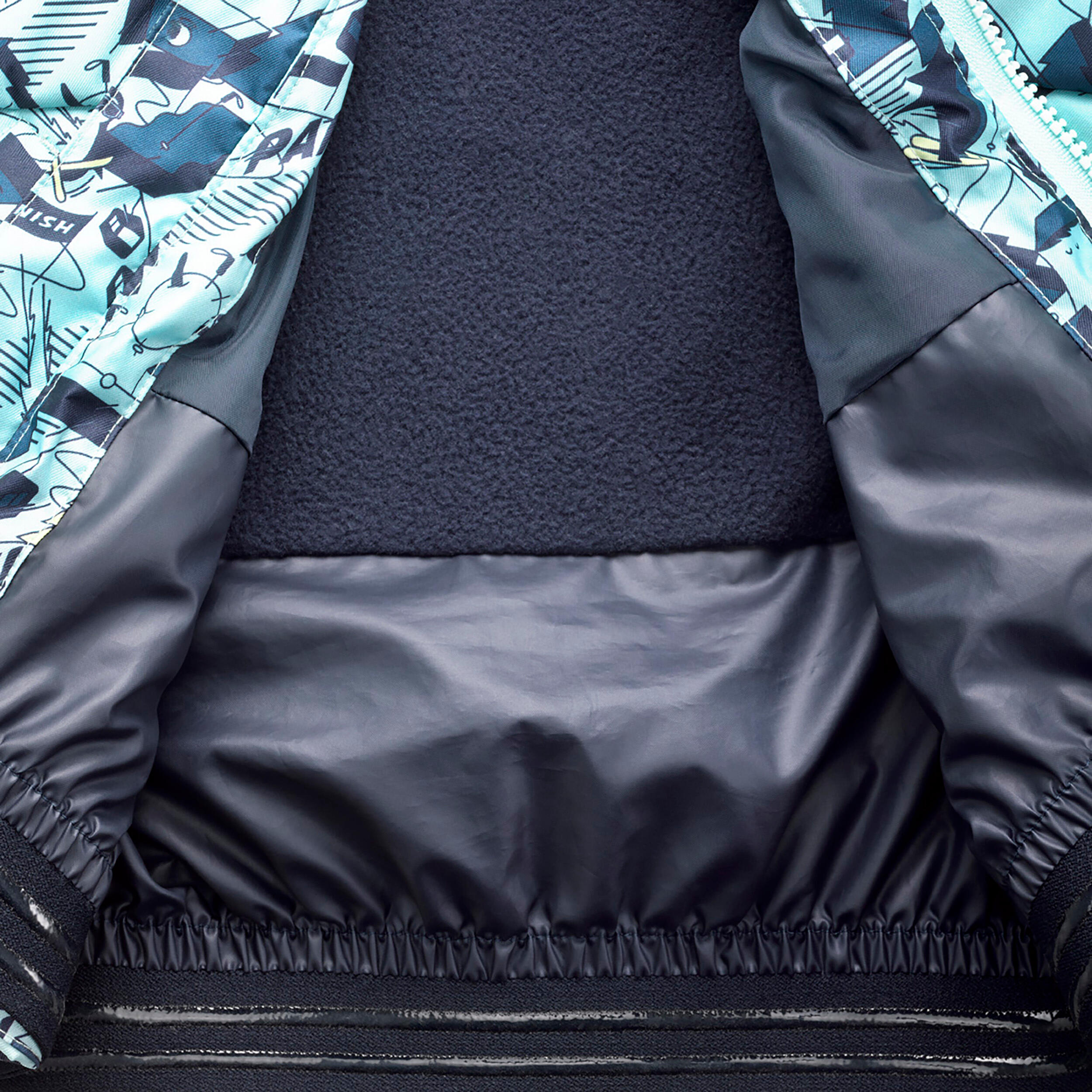 The coating is a waterproof substance that's spread on the inner side of the outer jacket fabric. It prevents water from seeping into the garment but allows water vapour produced by the body's physical activity to escape. This way, young children stay dry and are more comfortable.