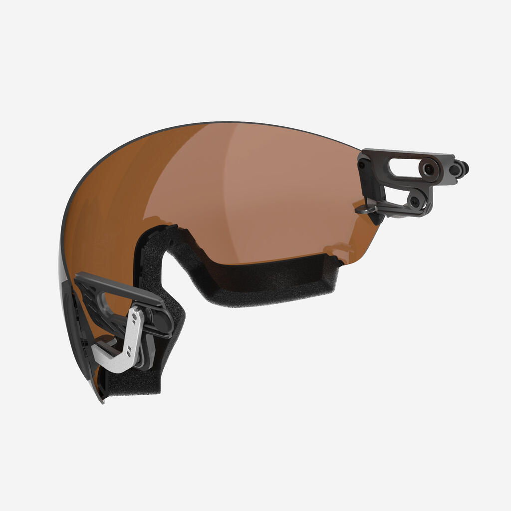 In the mountains, it is essential to have a suitable visor. This good weather visor (S3) is opaque enough to protect your eyes from UV rays and allow you to see contrasts clearly. The flash (outer colour of the screen) does not affect your vision, only the design.Take note that the S3 visor is also available in an HD version for fine weather, Ref. 8960727